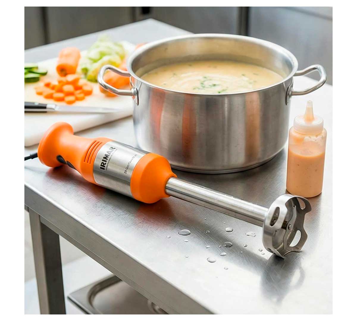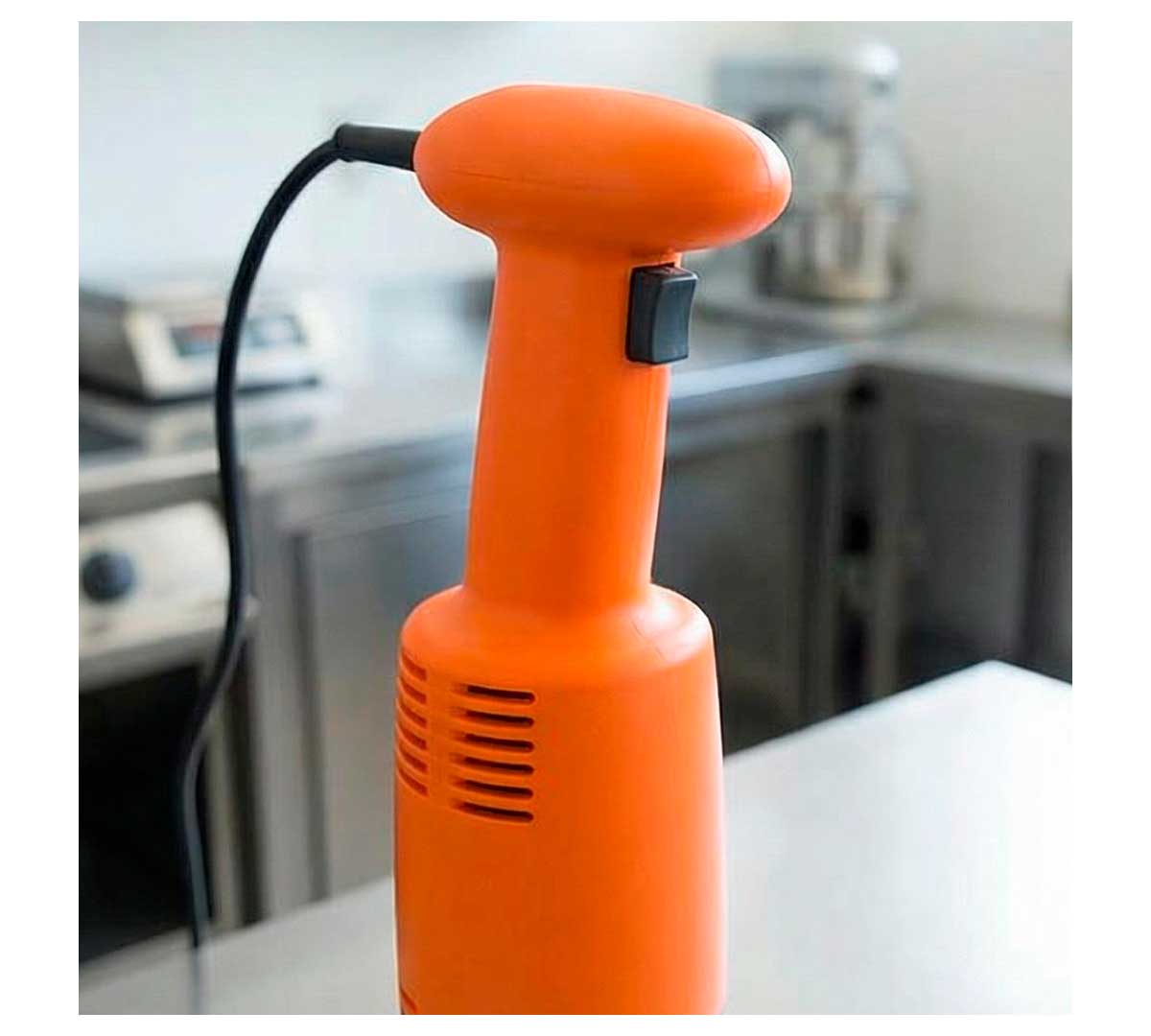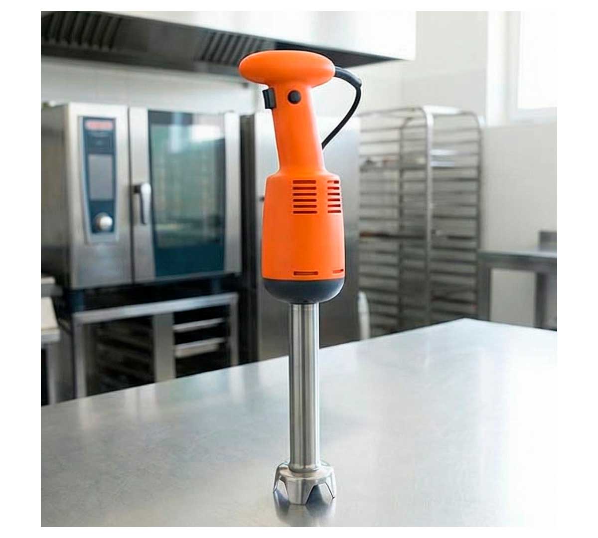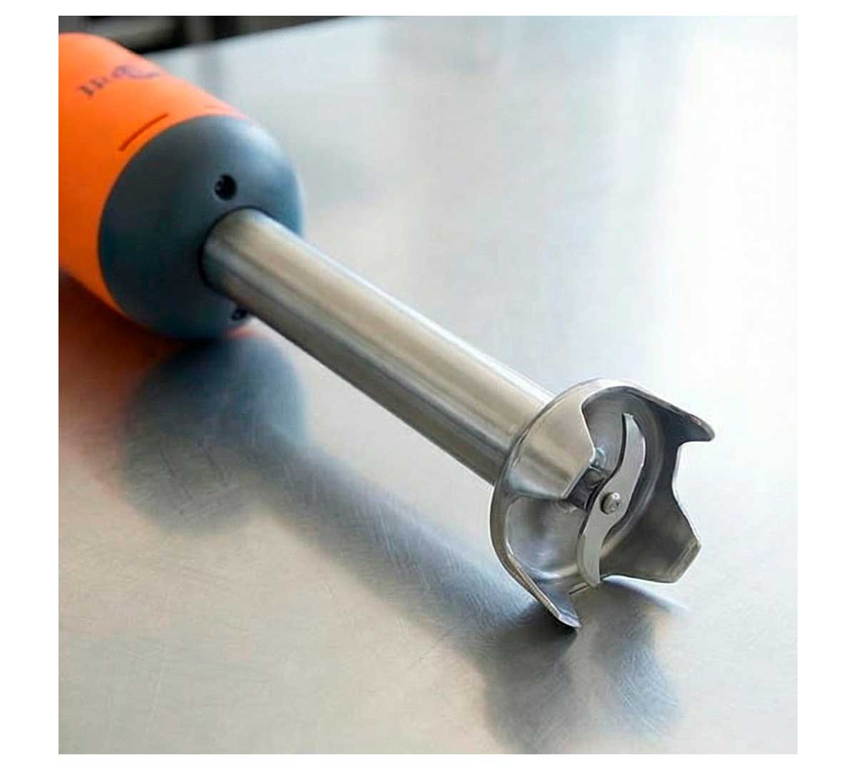 Triturador profesional de brazo fijo. Construido en acero inoxidable, con protector y cuchilla independiente. El tubo, palier interior, protector de cuchilla y rodamientos son de acero inoxidable. Es ergonómico y está provisto de un motor velocidad fija de 250 W de potencia.