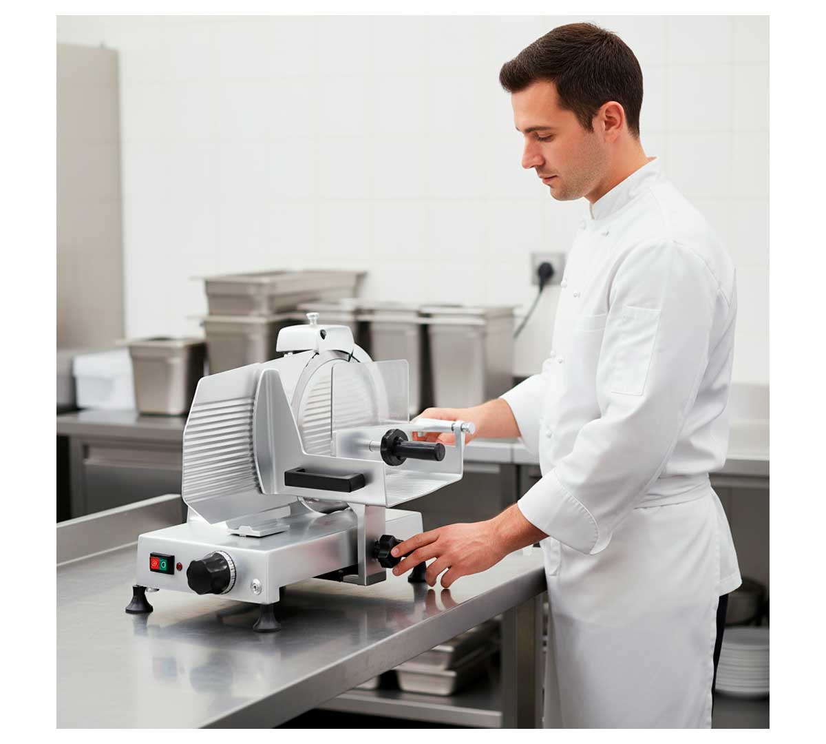 La Cortadora de Carne Vertical de Granita está fabricada en fundición de aluminio. Máquina robusta ideal para carnicerías, supermercados y cocinas grandes. Su motor es potente pero silencioso y su carro se desliza con suavidad.