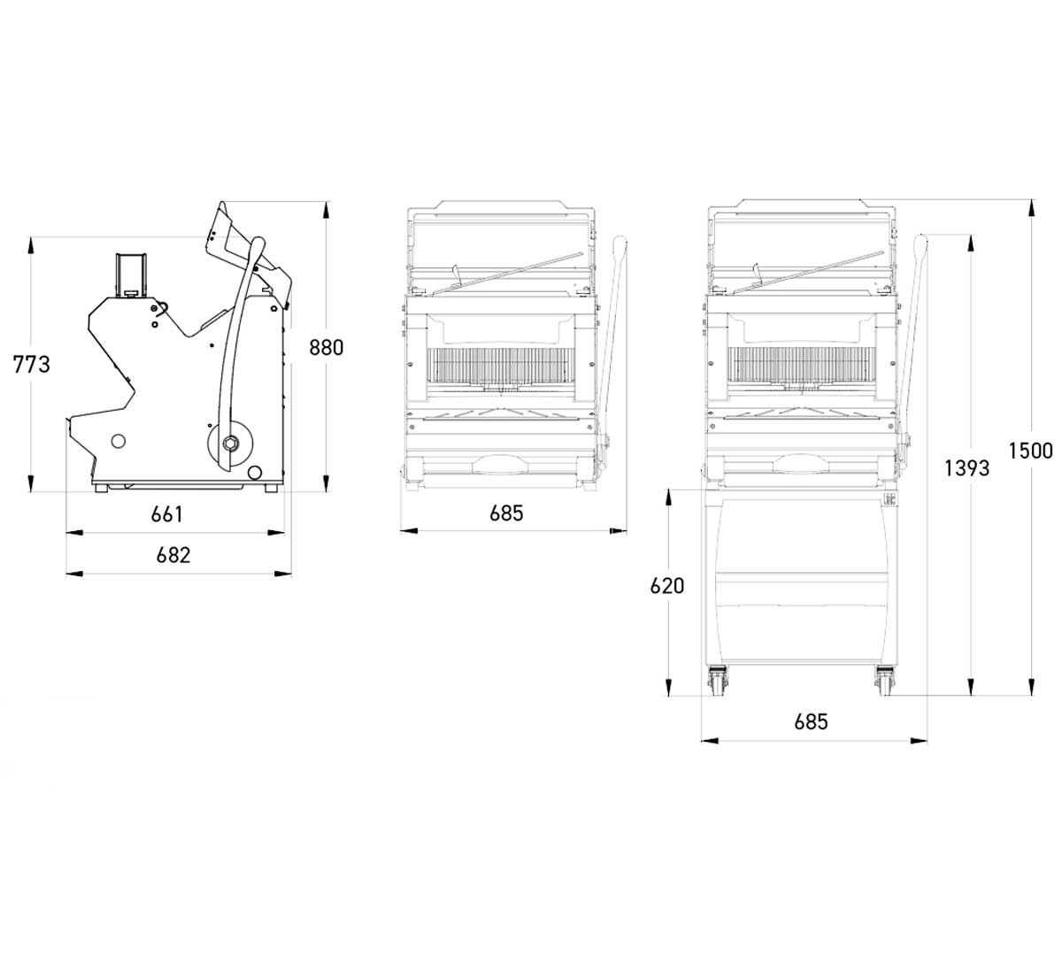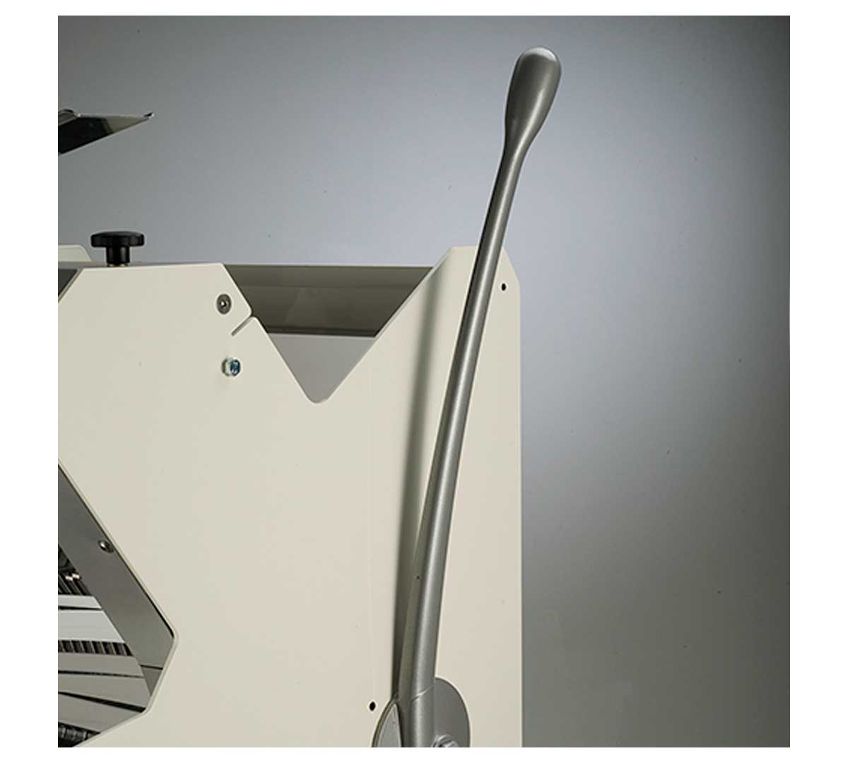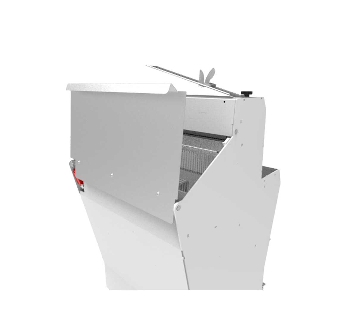 Cortadora de pan semiautomática compacta con producción hasta 200 rebanadas/hora y con un espesor fijo 13 mm. Sistema de palanca con tracción progresiva y carga frontal ergonómica. Diseñada para panaderías y puntos de venta con producción baja organizada. Disponible en versión para pan de centeno.