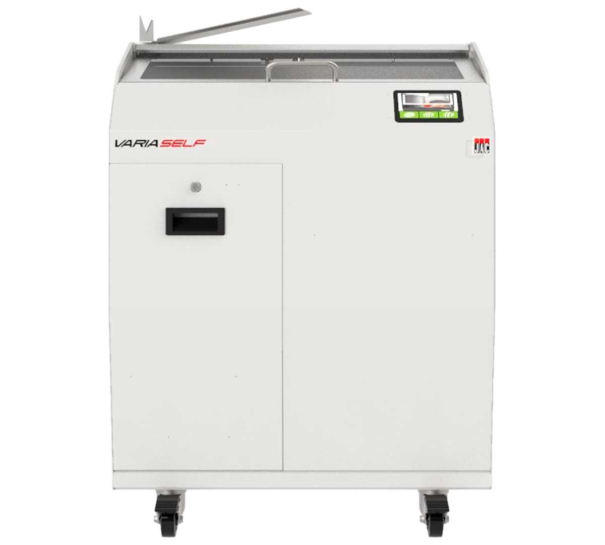 La VARIA SELF 800 pertenece a la gama autoservicio de alto rendimiento JAC, con espesor configurable de 4 a 30 mm, velocidad hasta 180 rebanadas/minuto y canal de entrada ampliado según modelo, orientada a supermercados de alto tráfico.