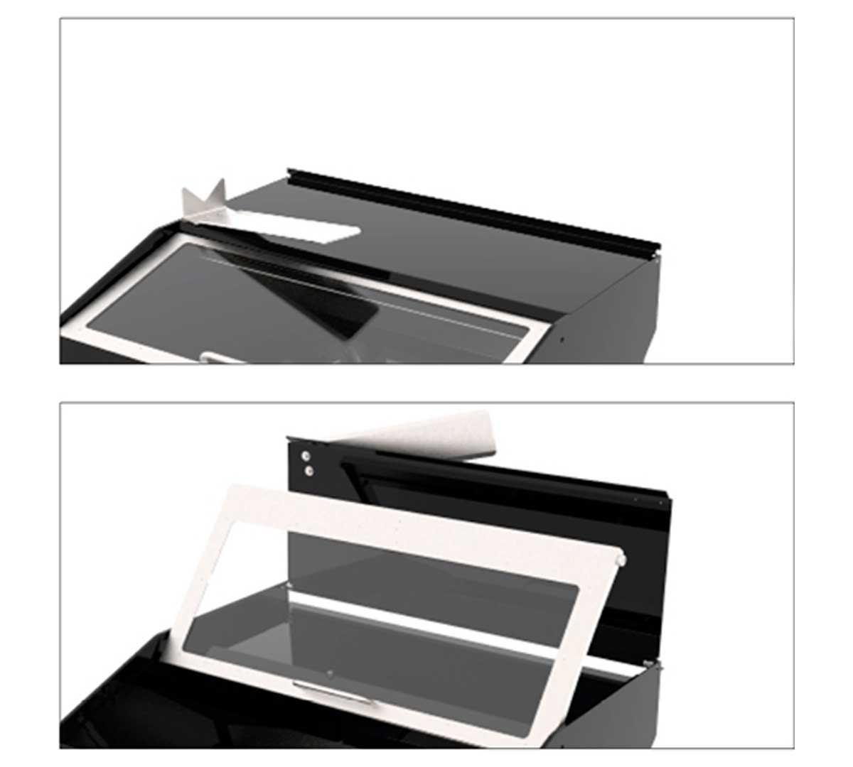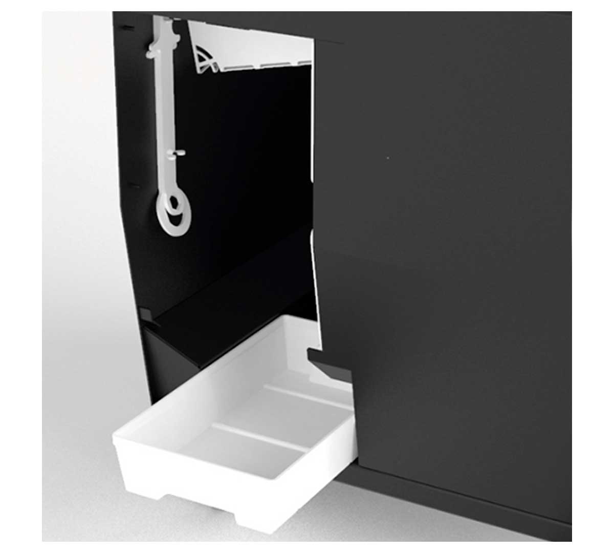 La cortadora cuenta con interruptores de seguridad magnéticos que paran la máquina si la puerta o el capó están abiertos, además de un bloqueo mecánico que impide abrir el capó durante funcionamiento y un diseño anti-pellizcos en la cubierta frontal para evitar accidentes.