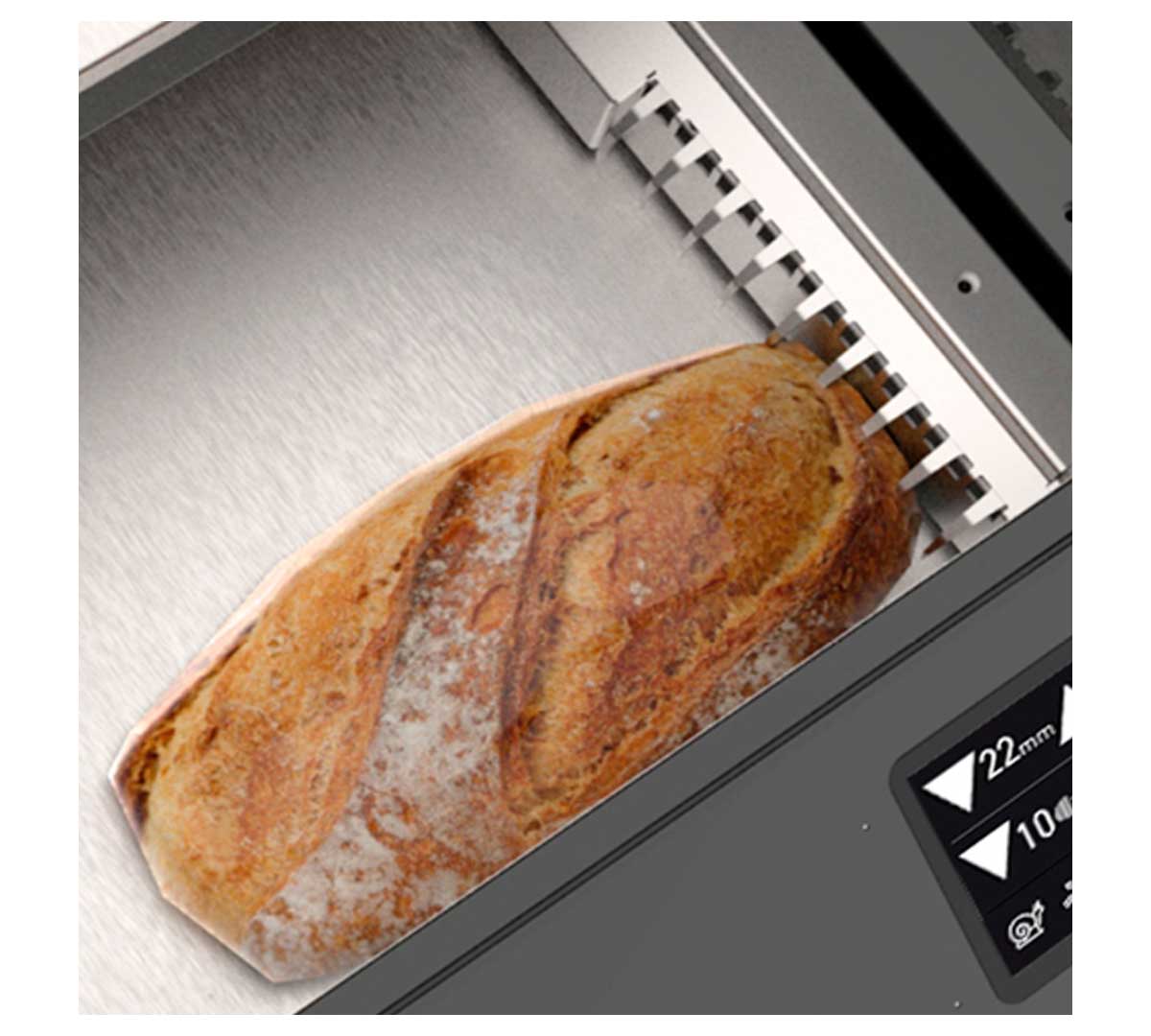 Indicada para supermercados, hipermercados y grandes superficies con alto volumen diario de corte. Ideal para autoservicio intensivo con distintos tipos de pan: baguettes, panes rústicos, molde o panes densos.