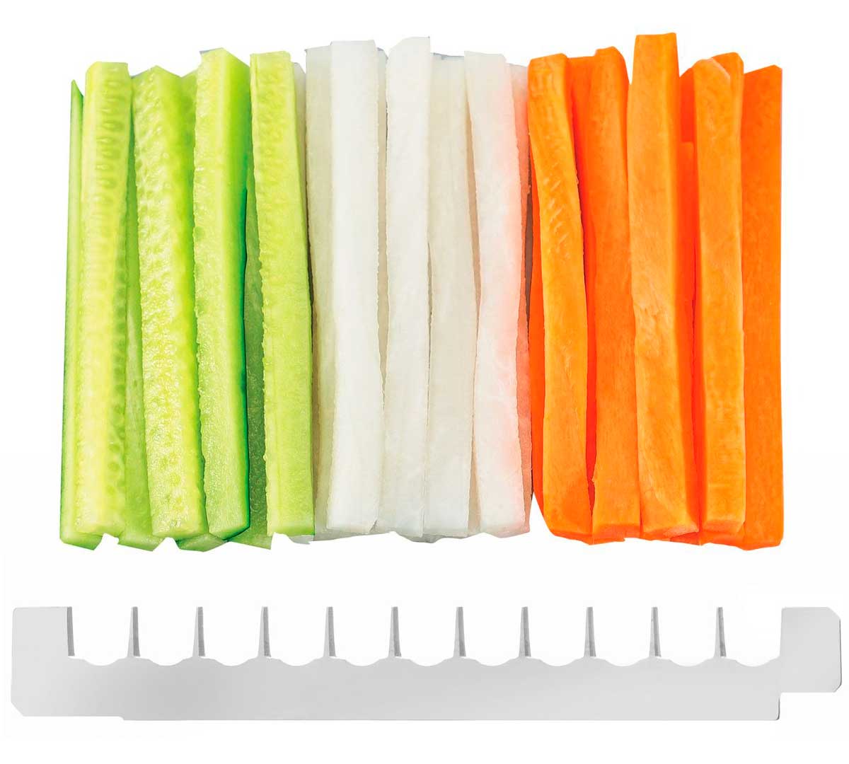 Incluye 3 hojas para cortar en juliana de 1,2 y 8 mm