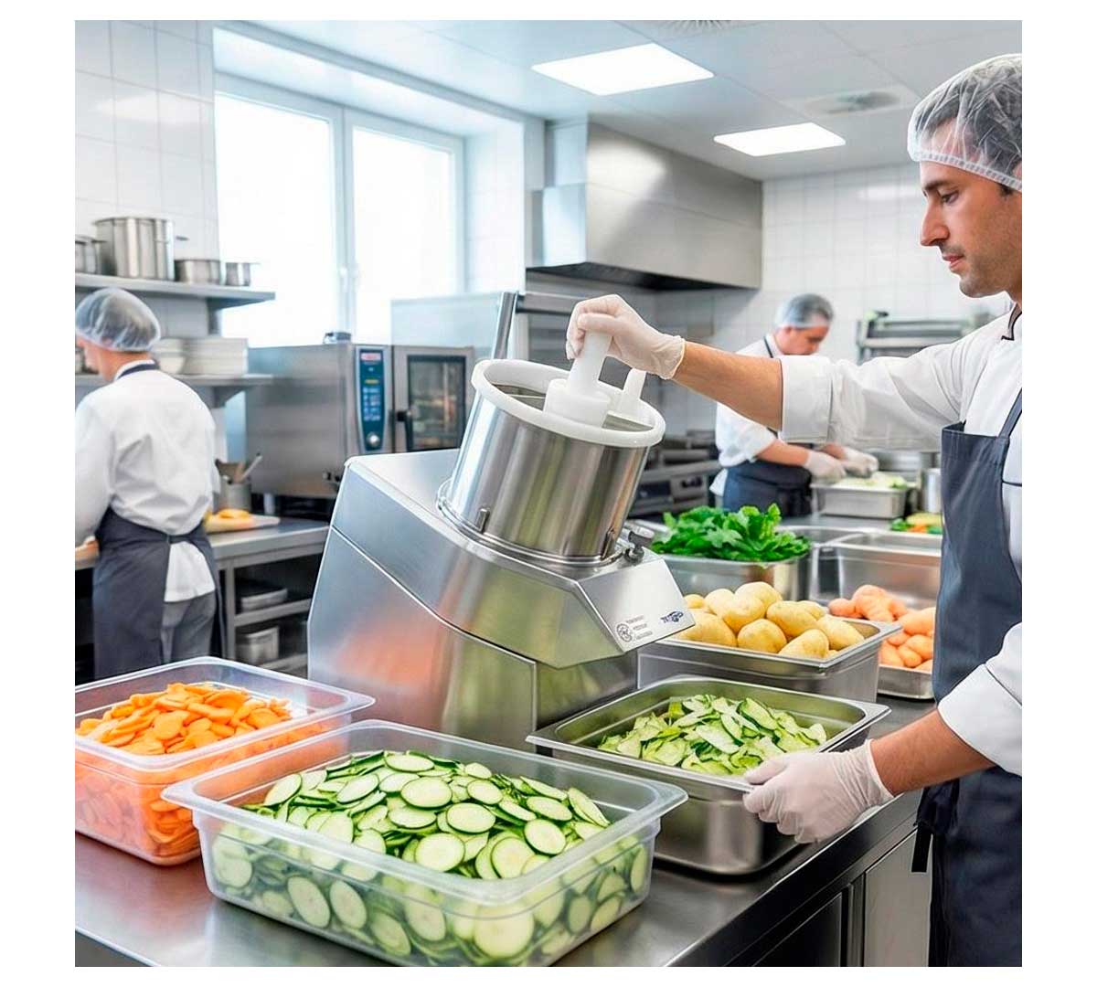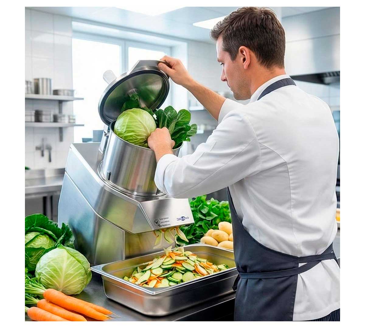 Cortador de Hortalizas CHEF-VE300 de Irimar, está recomendada para hortalizas y verduras, con cabezal intercambiable.