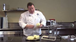 Cortador de cebollas manual de uso sencillo. Se consigue un corte limpio, en flor.