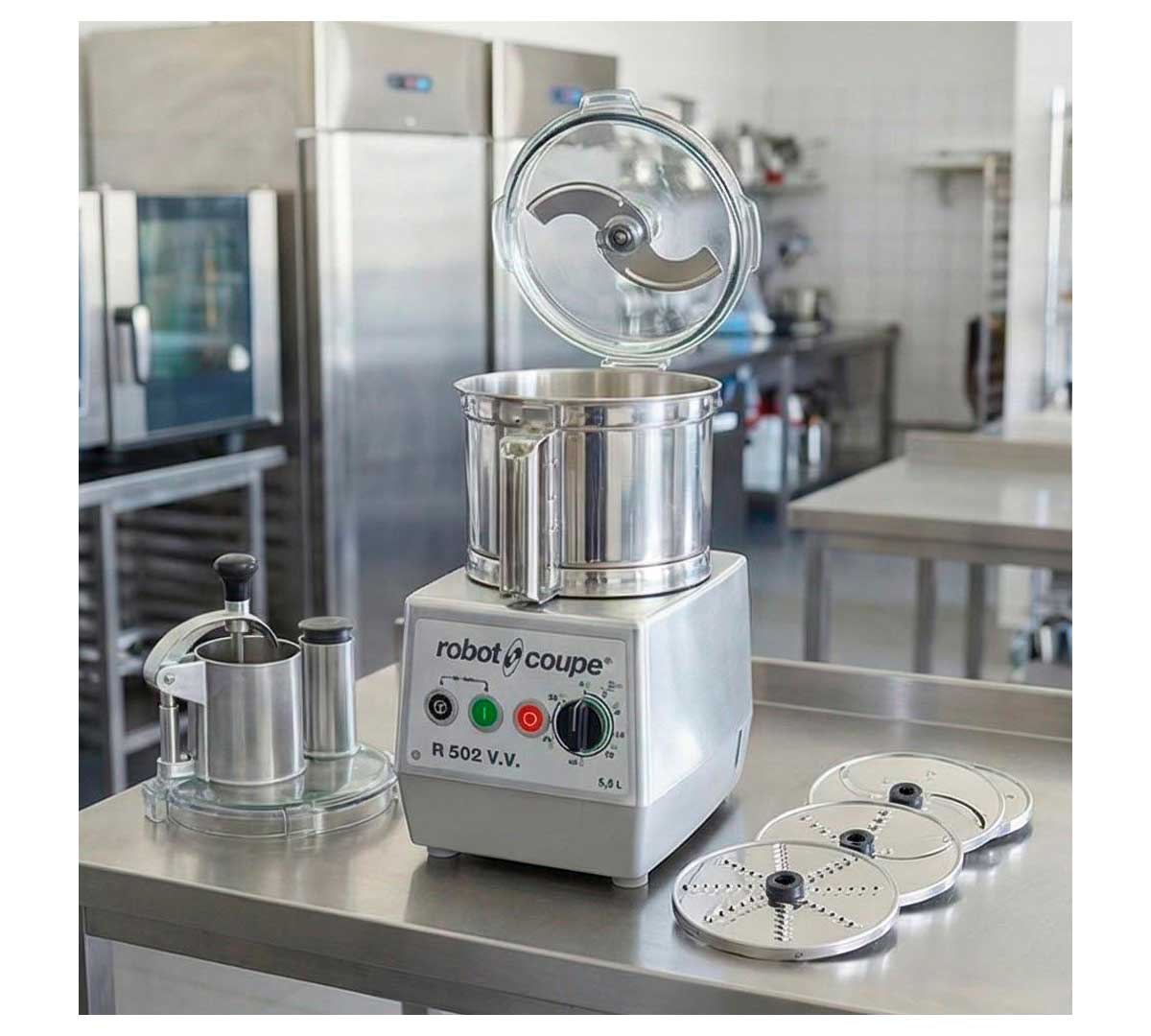 El Combinado Cutter/Corta-Hortalizas R 502 V.V. de Robot Coupe, pica, tritura, ralla, corta en rodajas, en bastoncillos, en juliana, etc.