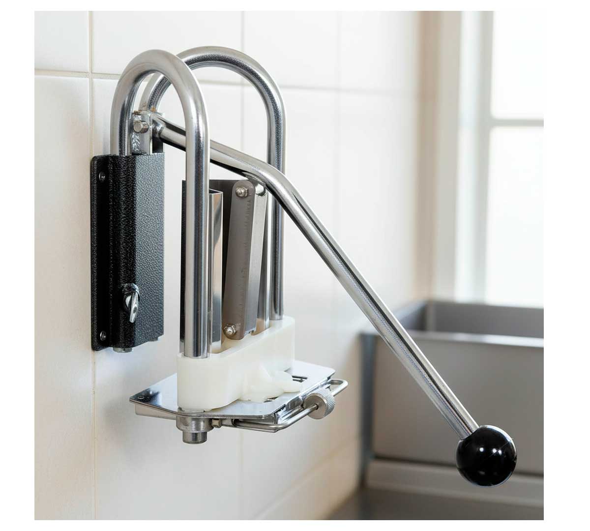 Cortapatatas de pared ideal para no ocupar espacio en la mesa. Permite cortar hasta 5 kg de patatas al minuto, lo cual es una ventaja en cualquier negocio de comidas.