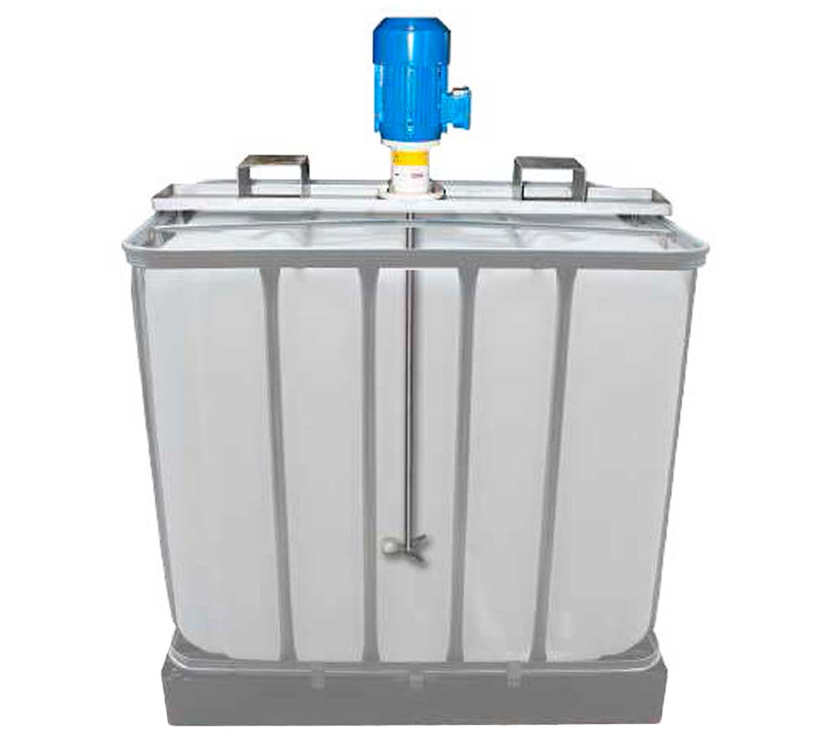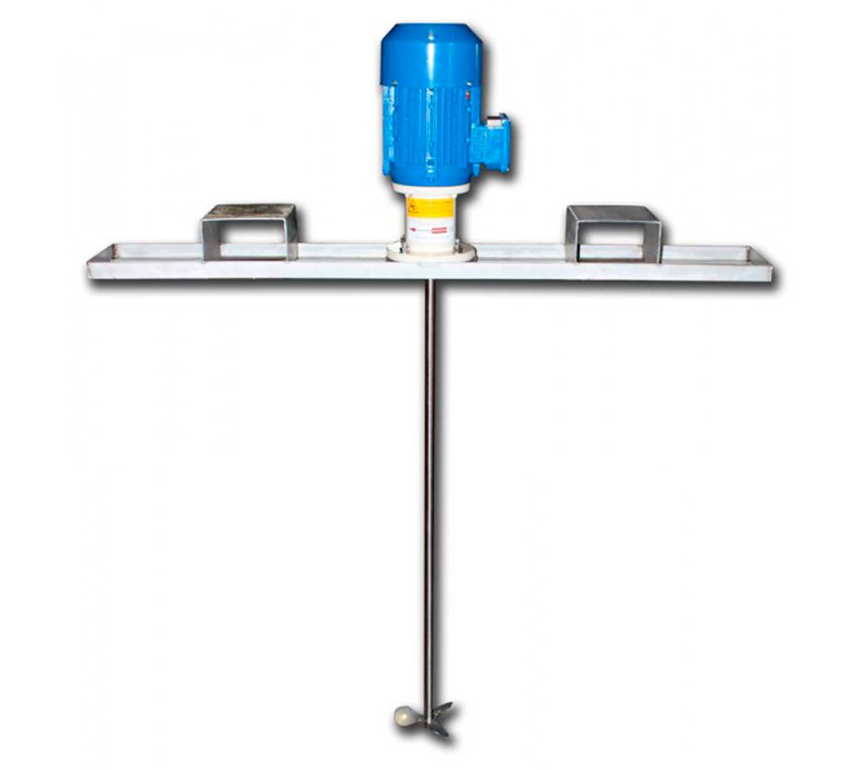 Equipo de agitación para acoplar en depósito de plástico paletizado. Puede adaptarse a medida la motorización y la hélice. Incluye una estructura que facilita su colocación y extracción. No incluye el depósito.