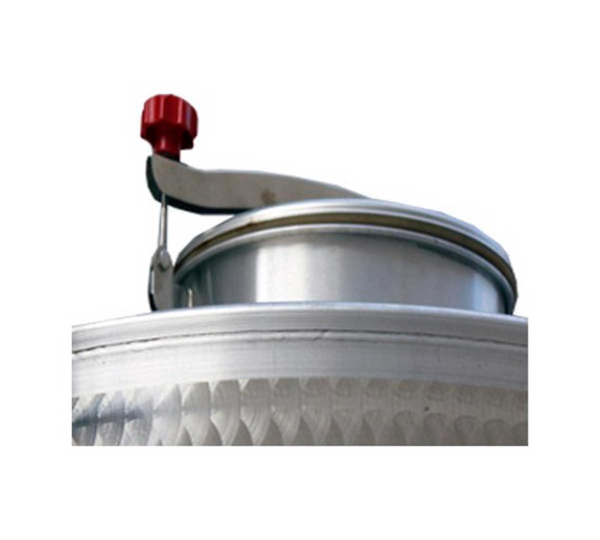 Depósito con cúpula cónica y boca de acceso. Dispone de volante y sistema de apertura con brazo y perno giratorio. El fondo es cónico. Está fabricado en chapa inox con acabado interior pulido y exterior adamascado. Se utiliza para almacenamiento y vinificación de vinos y cervezas.