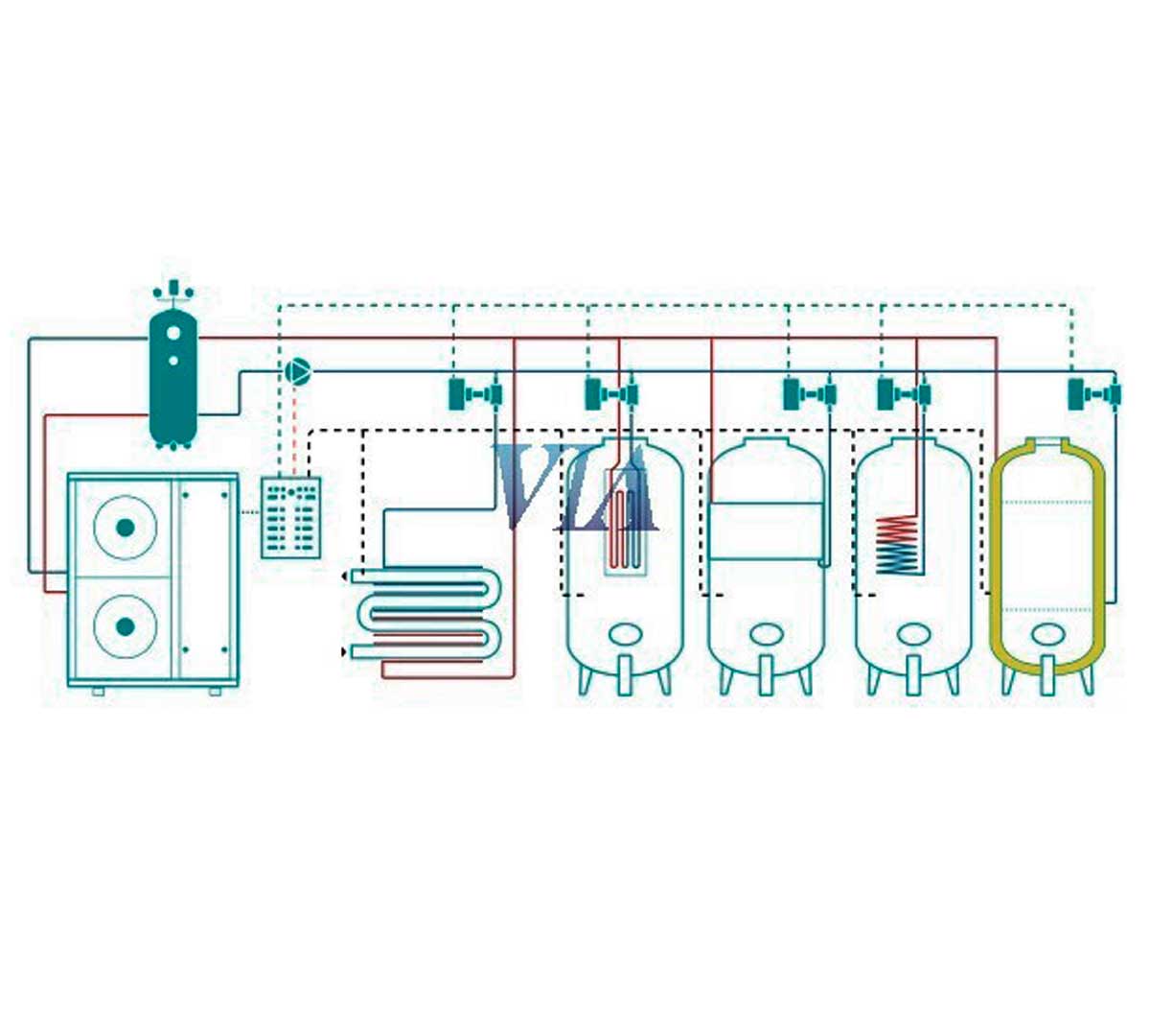 Está especialmente indicado para el control de temperatura de depósitos con camisa de frío en procesos de fermentación y estabilización, donde se requiera una refrigeración uniforme a partir de agua glicolada. Es adecuado para instalaciones con varios tanques que necesiten regulación independiente, tanto en bodegas como en otras instalaciones que trabajen con depósitos refrigerados por camisa.