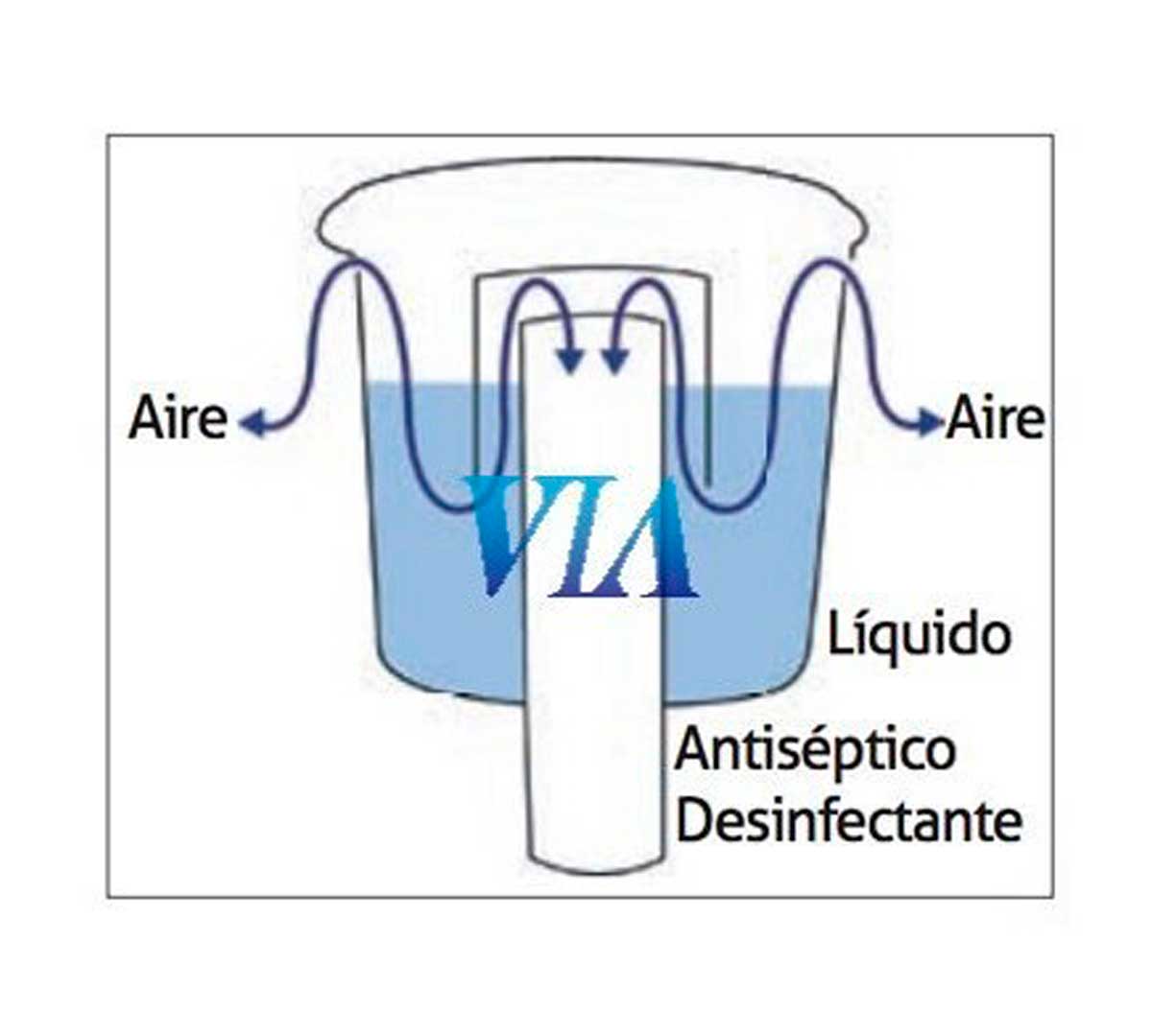 Válvula de seguridad con sulfuroso para depósitos de vino. Se instala en la parte superior del tanque. Se coloca el líquido antiséptico desinfectante en la válvula de seguridad, de esta forma el aire que entra o sale se purifica.