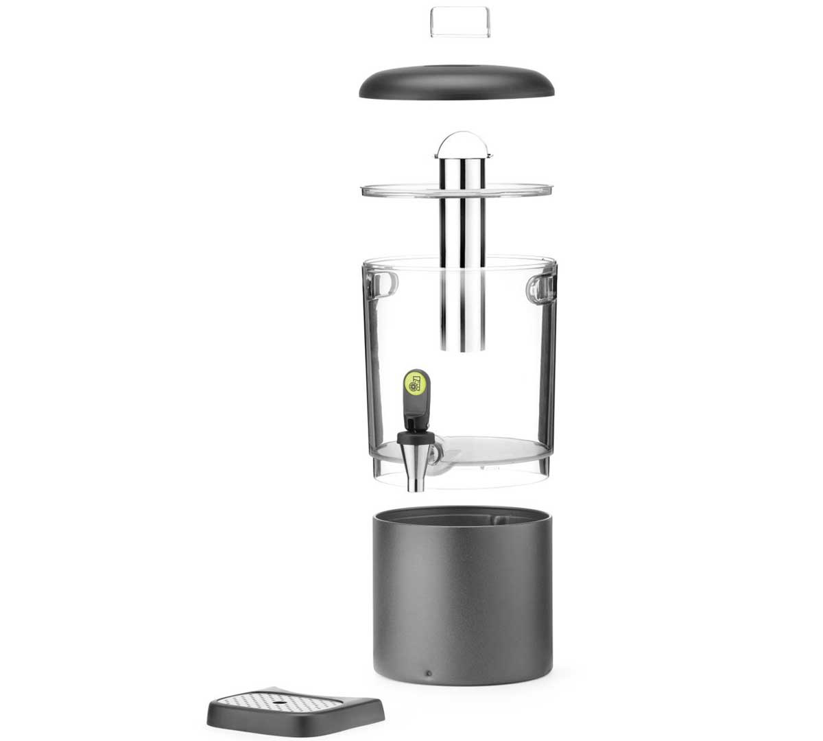 Este dispensador de bebidas, destaca por un diseño contemporáneo firmado por el prestigioso diseñador Robert Bronwasser, fusionando estética actual con una artesanía de calidad superior.