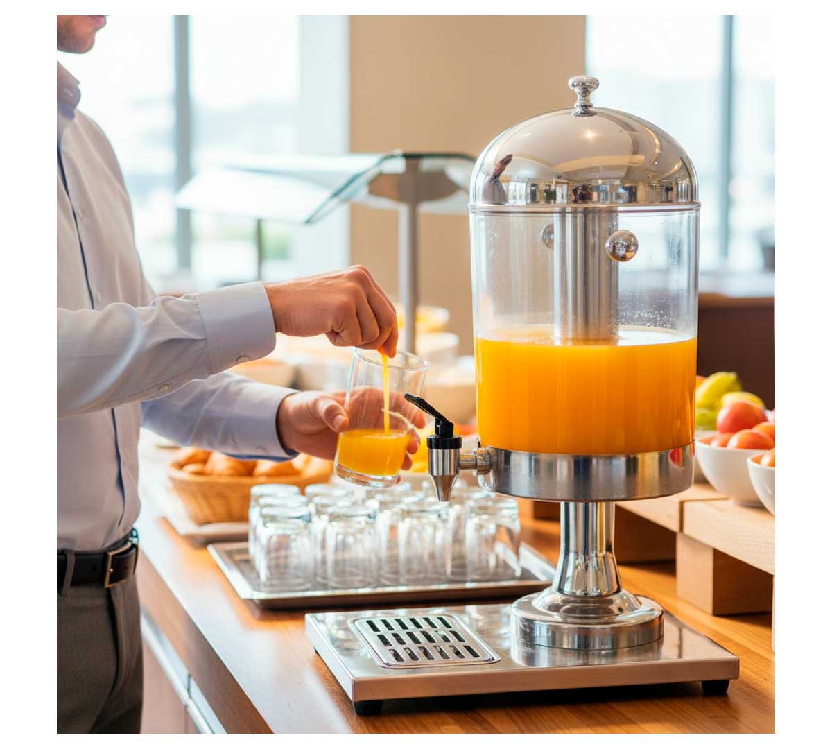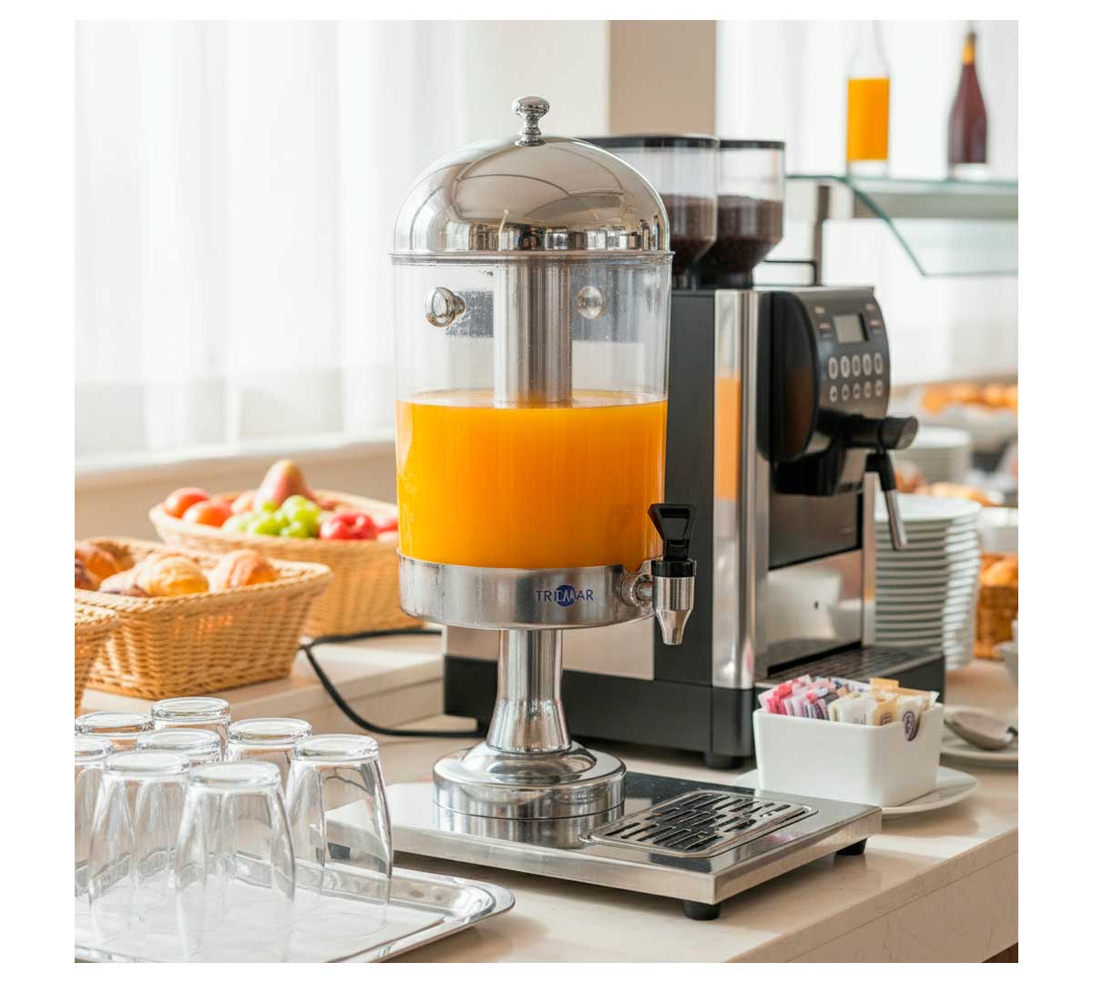Dispensador fabricado en acero inoxidable, ideal para catering. Recomendado para zumos.