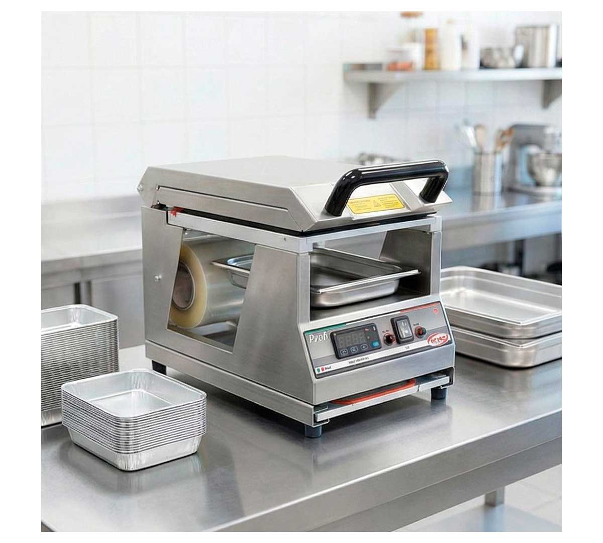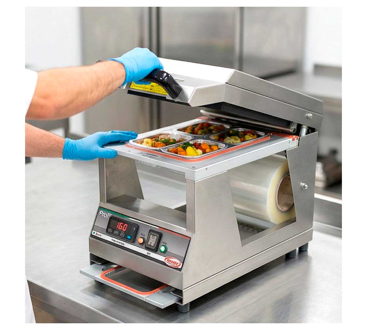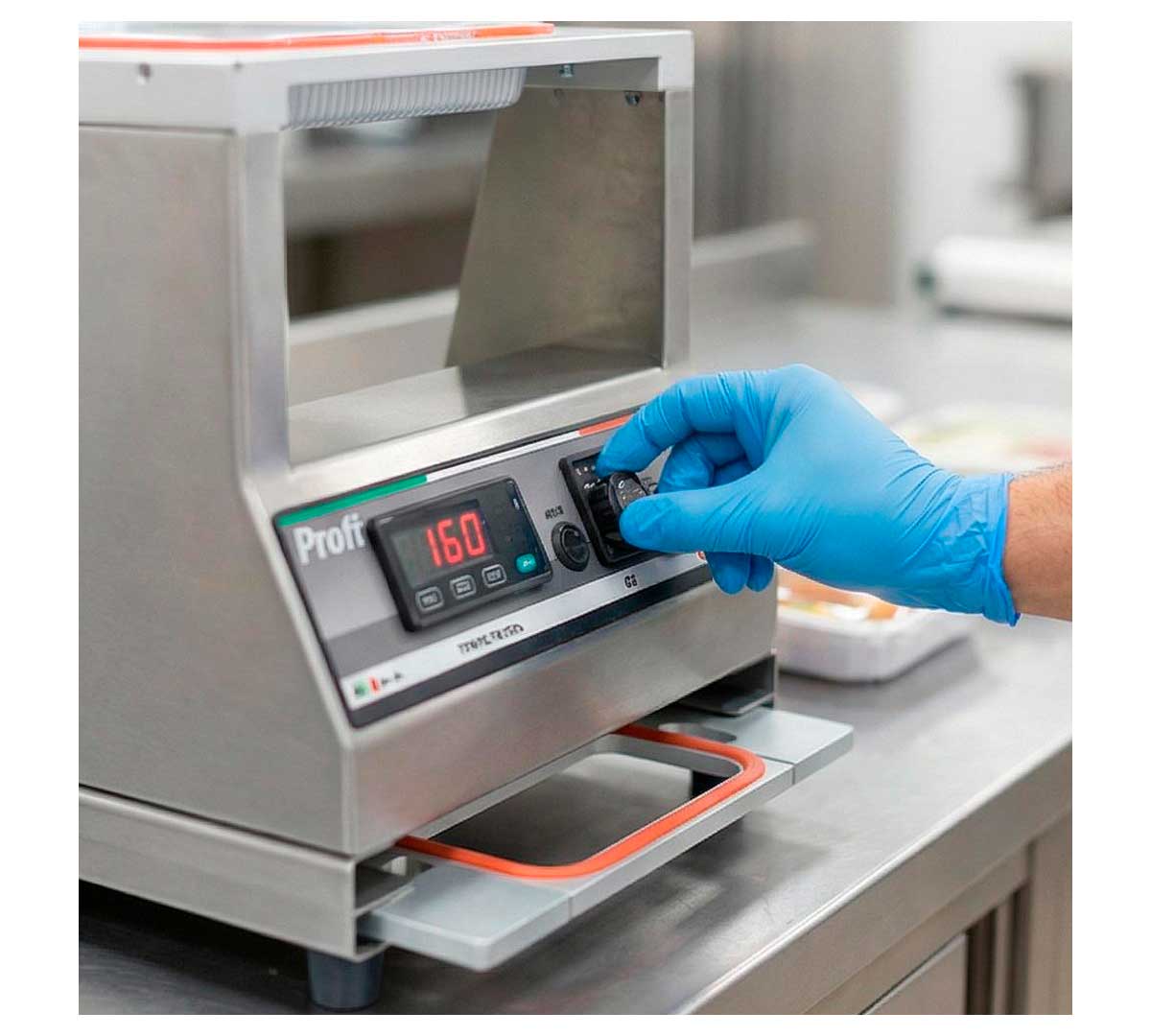 La Termoselladora de Barquetas Profi 3 de Orved, es la mas grande de la línea Profi. Garantiza un sellado perfecto incluso en presencia de sustancias grasas o aceitosas.
