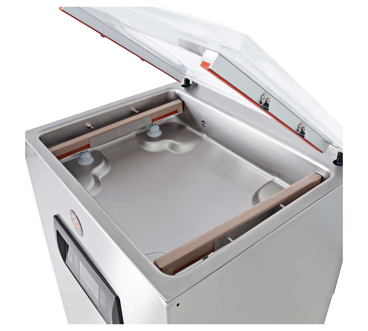 Envasadora al vacío profesional de pie con bomba de 40 m³/h y doble barra de soldadura, equipada con control de vacío por sensor para máxima precisión. Ideal para cocinas profesionales, producción media-alta y técnicas como sous-vide dentro de gama avanzada.