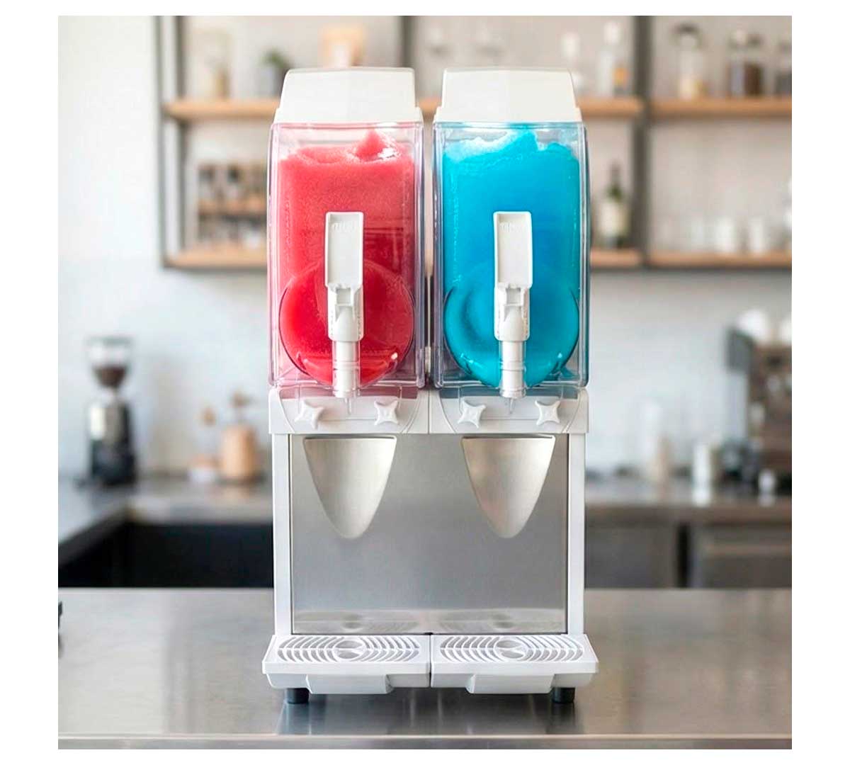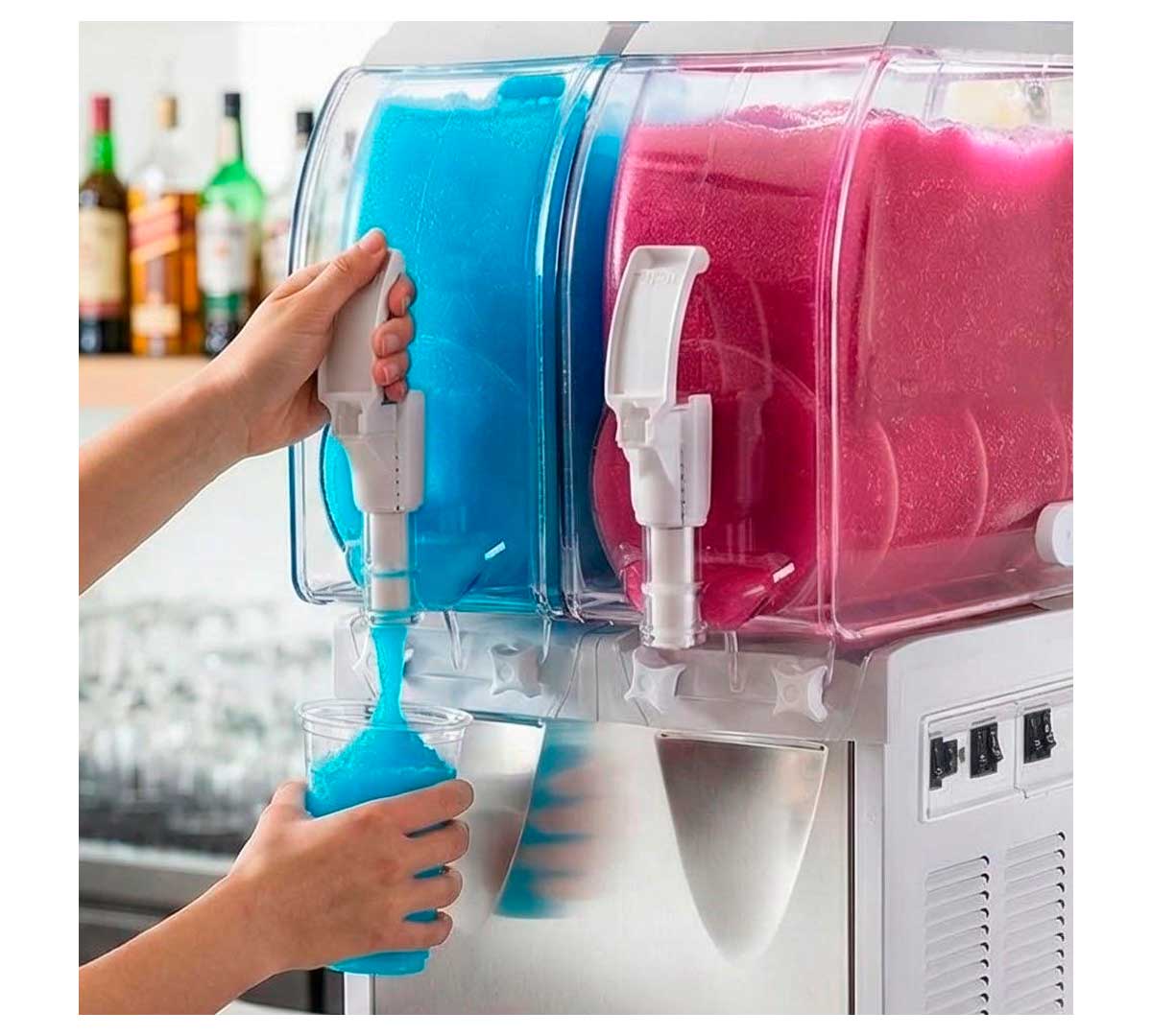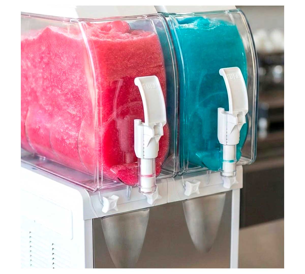 Esta granizadora también está disponible en color negro. Además, tiene como accesorio tapa premix a la que se le añade la carga ya mezclada y tapa post mix que mezcla la carga. Consúltanos para más información.