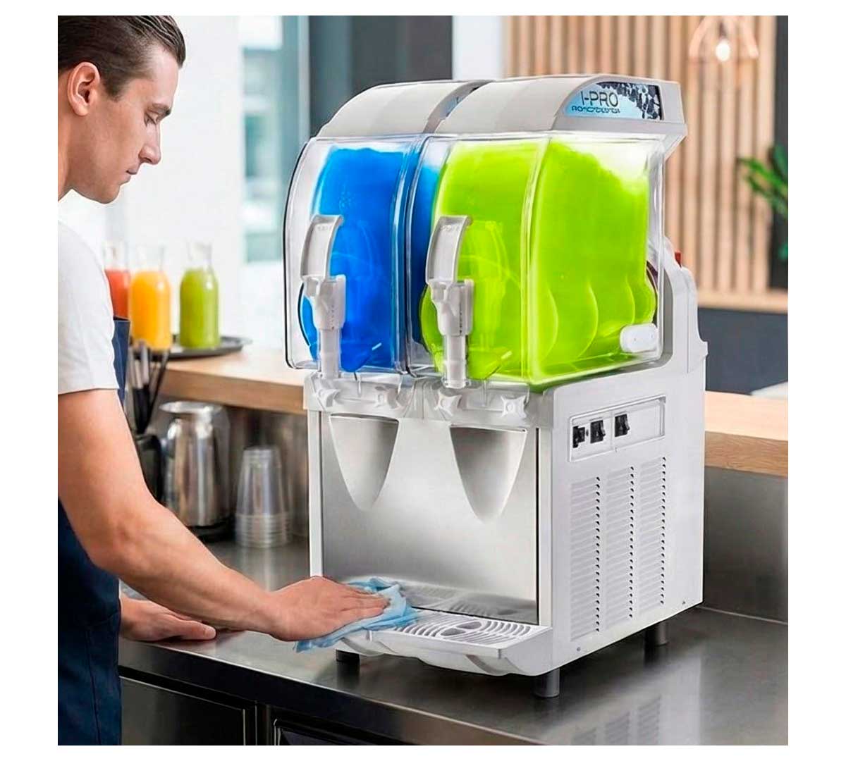 La Granizadora Ecológica Ipro 2 de Granita tiene dos depósitos de doble pared que evitan la condensación y ahorra 30% de consumo energético. Con control mecánico.