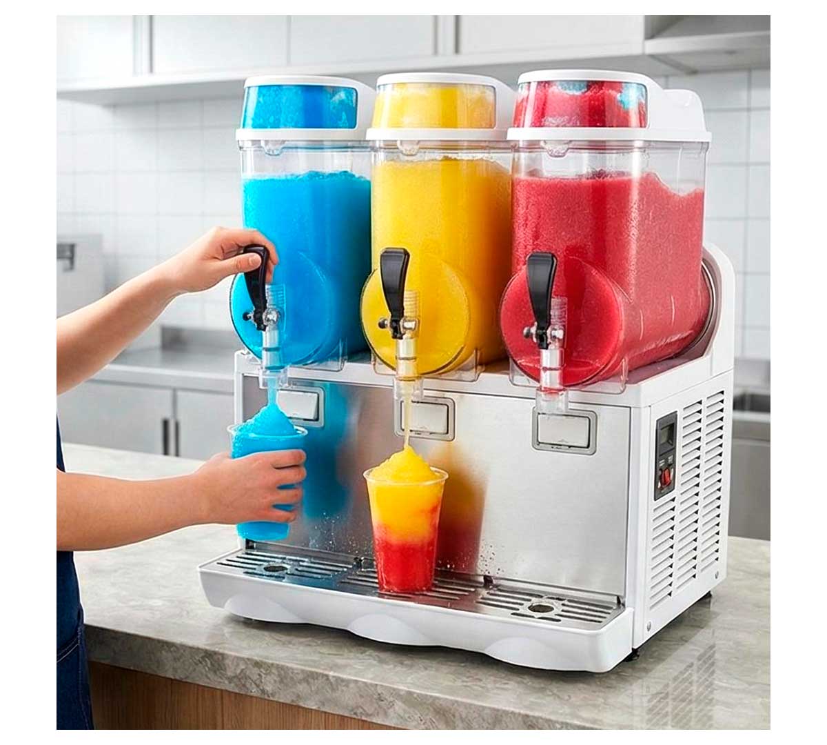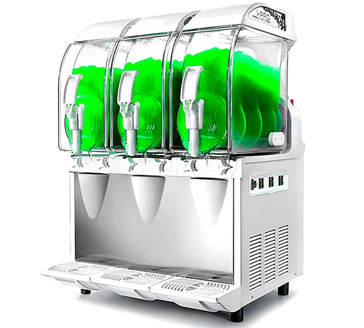 La Granizadora Ecológica Ipro 3 de Granita tiene tres depósitos de doble pared que evitan la condensación y ahorra 30% de consumo energético. Con control mecánico.