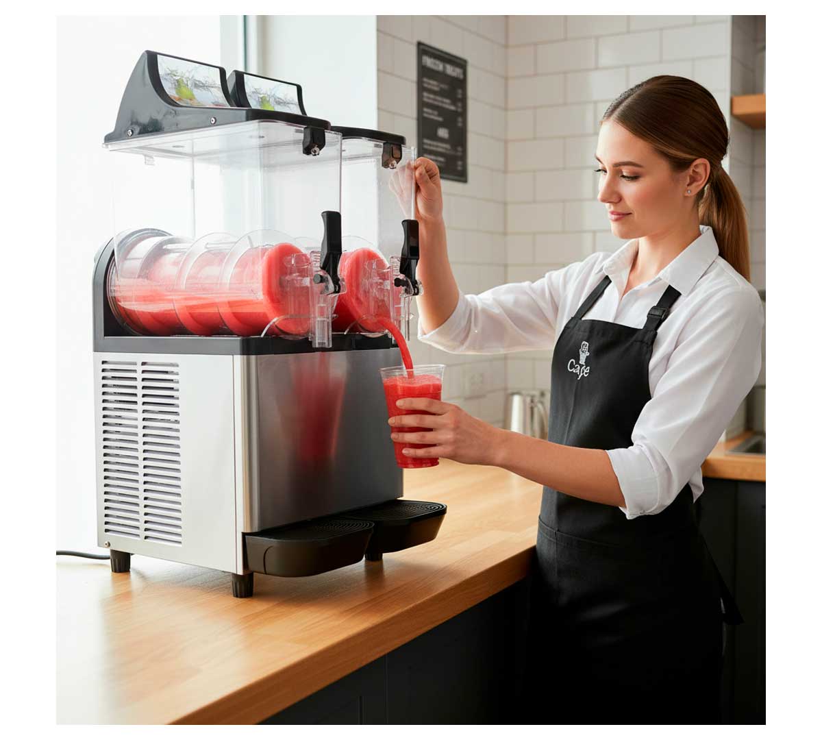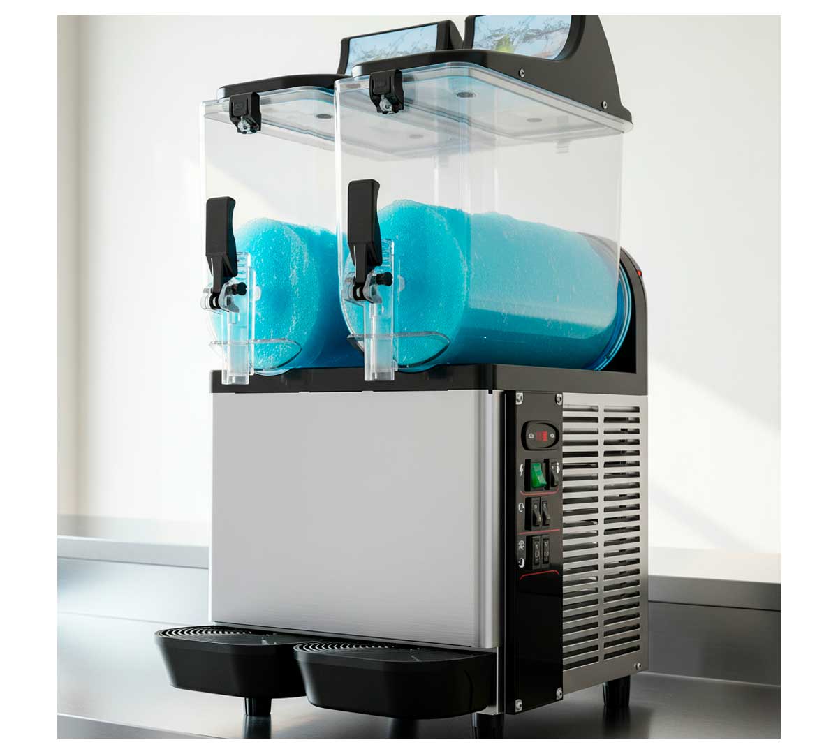 La Granizadora Granibeach GB 220 de Sencotel está diseñada para preparar y dispensar granizados y sorbetes. Los depósitos son de policarbonato y extraíbles. El control es digital.