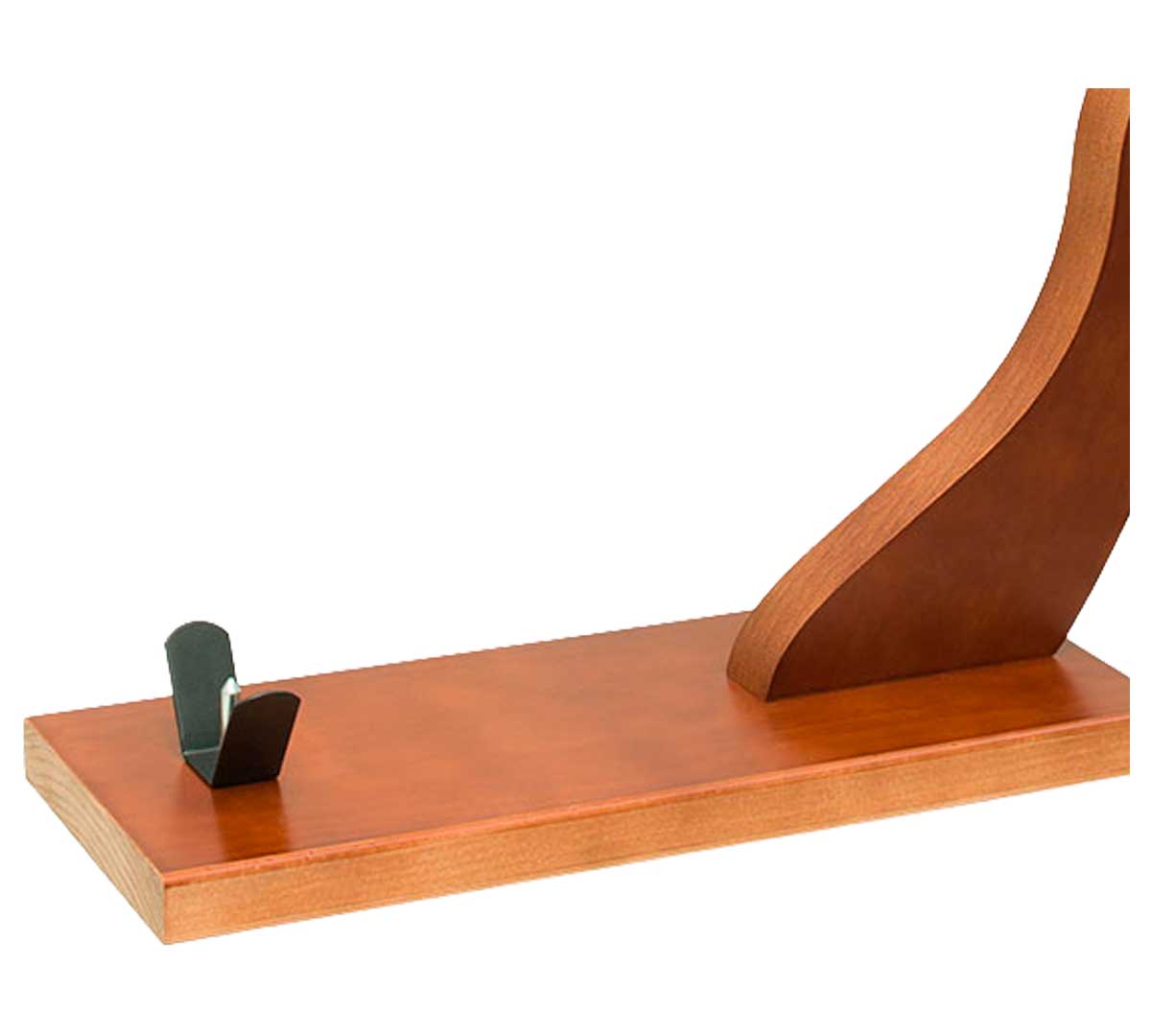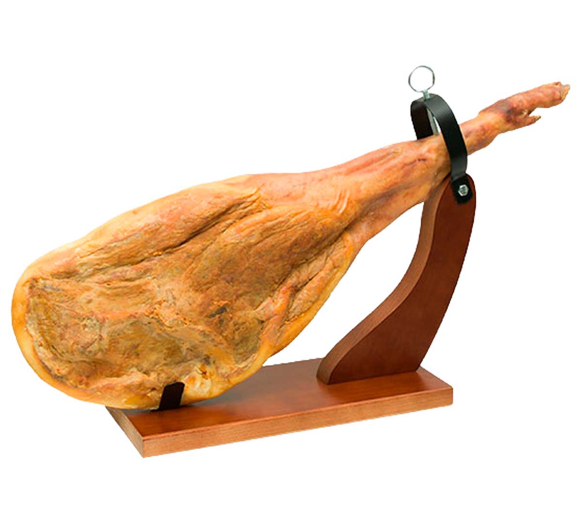 Jamonero de madera lacada en nogal con base de 40 cm. Sistema de sujeción metálico y diseño compacto. Orientado al corte manual en entornos de uso moderado dentro de la gama económica funcional. No apto para uso intensivo.