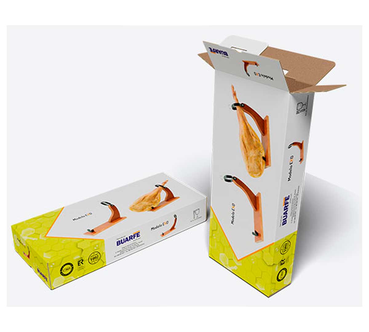 El Jamonero EKO Huelva Buarfe es un soporte de madera diseñado para la sujeción de jamones en cocinas, restaurantes y puntos de corte que buscan una solución sencilla y estable.