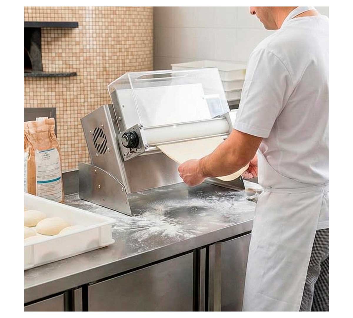 Laminadora con 1 rodillo y sistema en frío que no altera las características de la masa. El grosor y el diámetro del disco se pueden regular de 0 a 5 mm. Diseñada para la preparación de pizzas, focacionas, tortitas, etc. El pedal eléctrico está incluido.