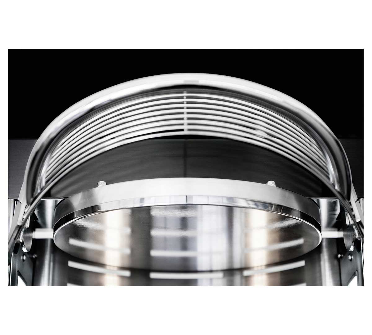 Prensa diseñada para moldear bases de masa de pizza de 33, 45 y 50 cm. Ayuda a aumentar la productividad. Tiene doble iluminación y rejilla de seguridad. Ideal para grandes producciones. La temperatura máxima de trabajo es de 160 °C.
