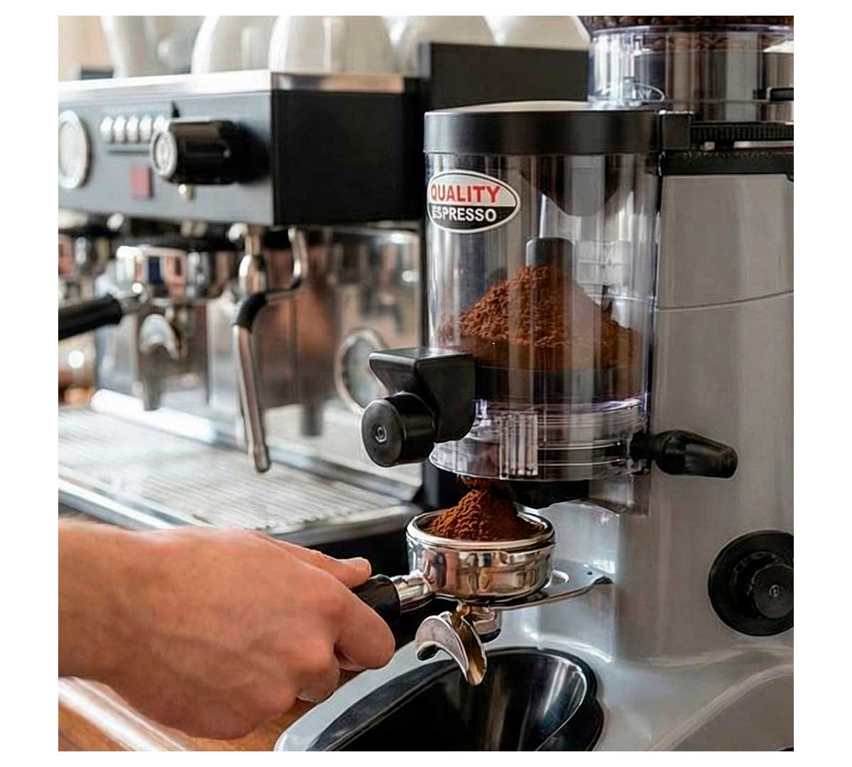 Molino dosificador de café equipado con una palanca, desde la cual distribuir el café molido. Este modelo encaja a la perfección con cualquier máquina de café.