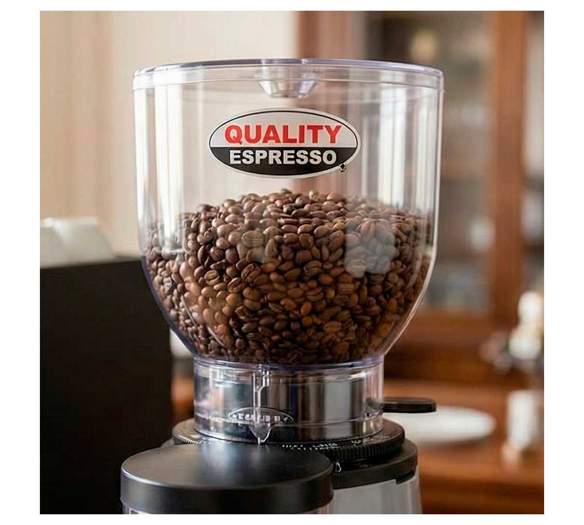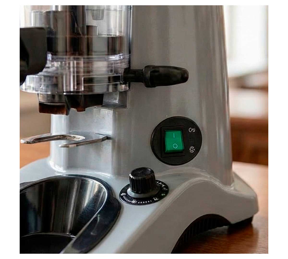 Este molino de café está equipado con dosificador de palanca, desde el cual se distribuye el café molido. Este molinillo de café es una buena elección para establecimiento profesionales que trabajan con diferentes variedades de café.