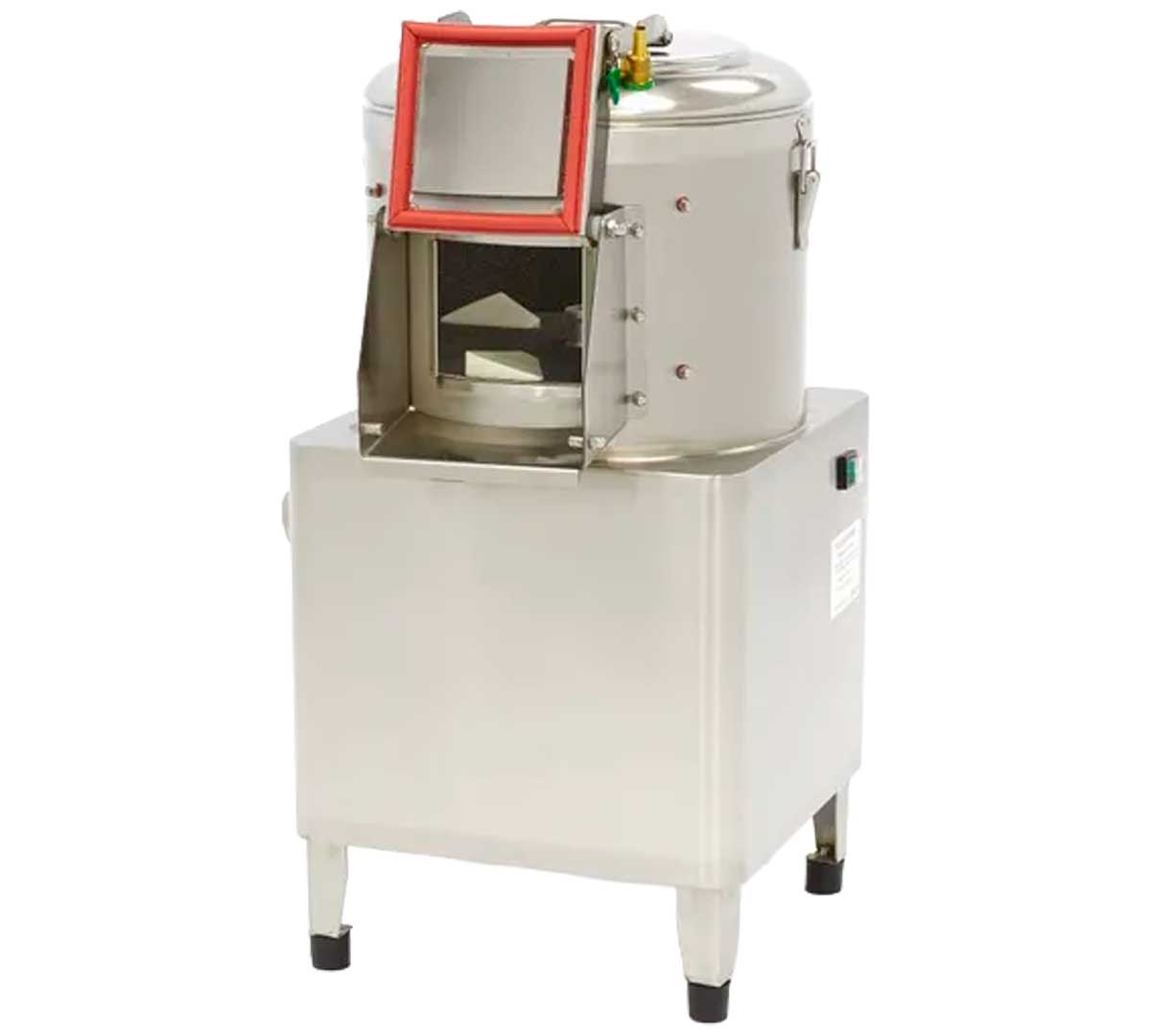 Este pelador de patatas, también conocido como peladora automática de tubérculos, destaca por su construcción en acero inoxidable y por la facilidad de uso, desmontaje y limpieza, garantizando una higiene óptima y un mantenimiento sencillo.
