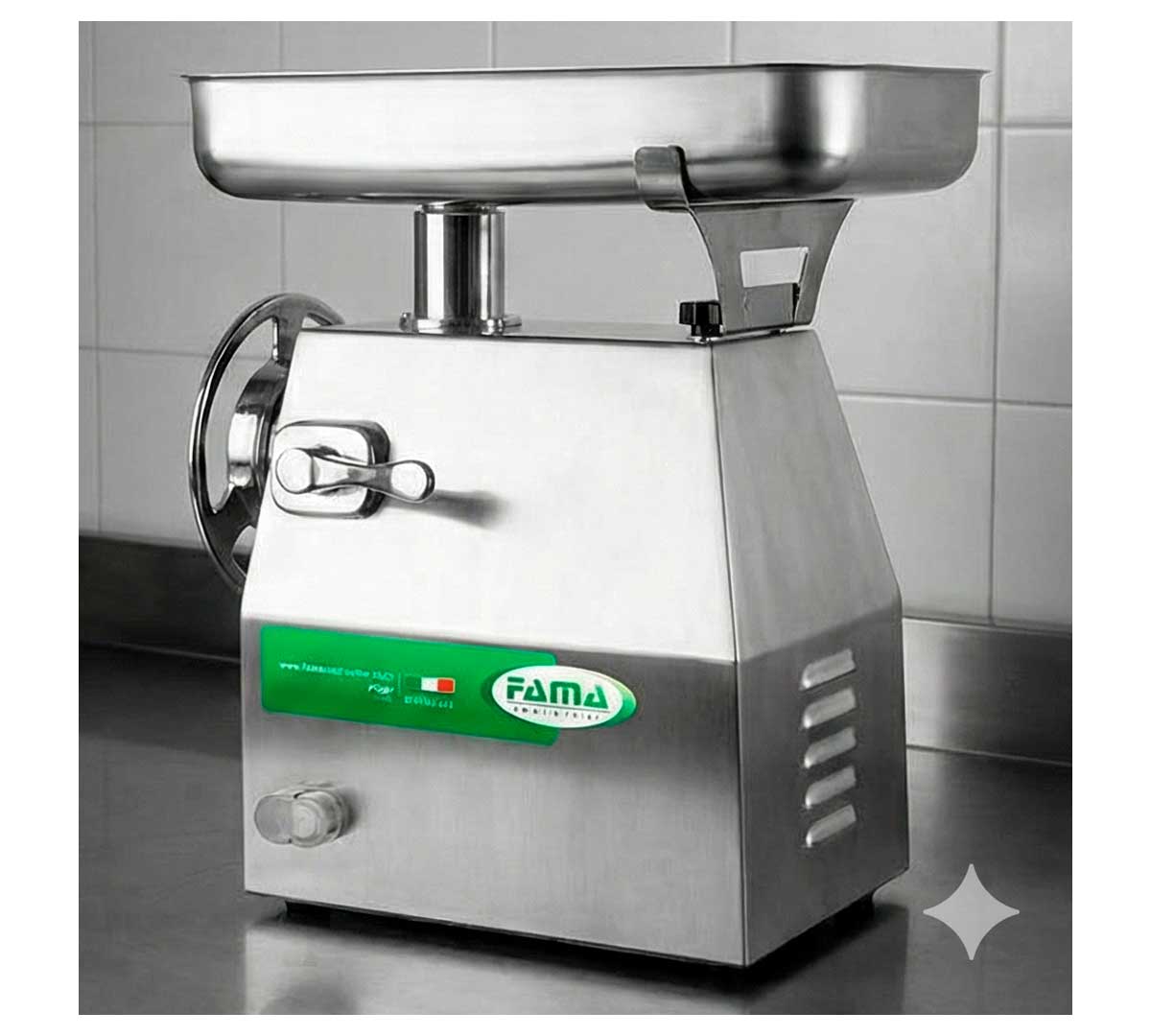 Picadora de Carne TI de Fama, con grupo picador fabricado en acero inoxidable alimentario.