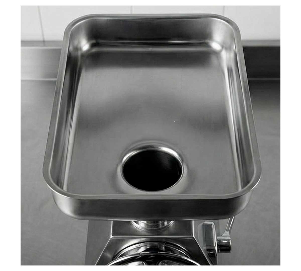 Picadora de carne con grupo picador de acero inoxidable y transmisión de engranajes. Con una boca de carga con un diámetro de 52 cm.