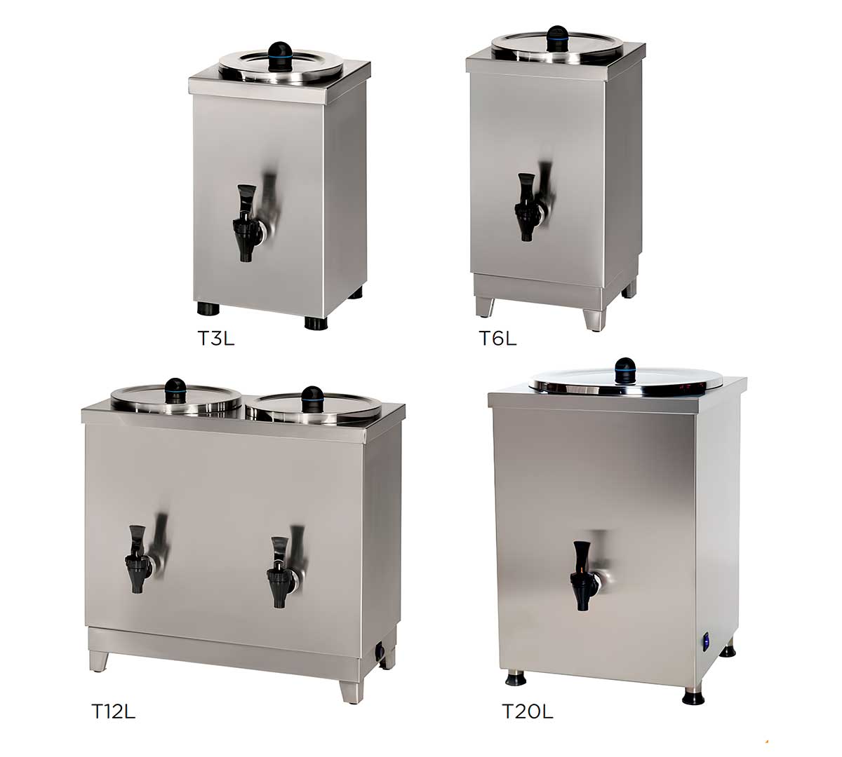 Fabricado con todos los controles de calidad y excelentes componentes. Este modelo de termo pertenece a la gama Toledo y cubre las necesidades del sector hostelero. Tiene una capacidad de 6 + 6 litros.