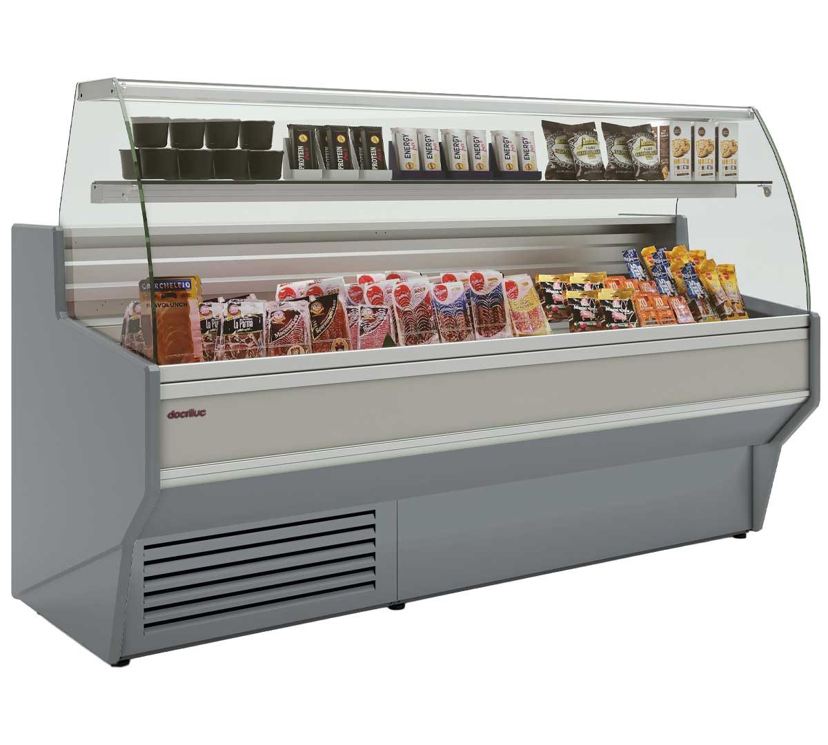 La Vitrina expositora Vesper VE-8-C de Docriluc es ideal para carnicerías, charcuterías y exposición de productos lácteos. Es una solución de refrigeración y exposición que combina diseño robusto, eficiencia y versatilidad, ideal para mostrar todo tipo de productos frescos en cualquier punto de venta. Con cristal curvo.