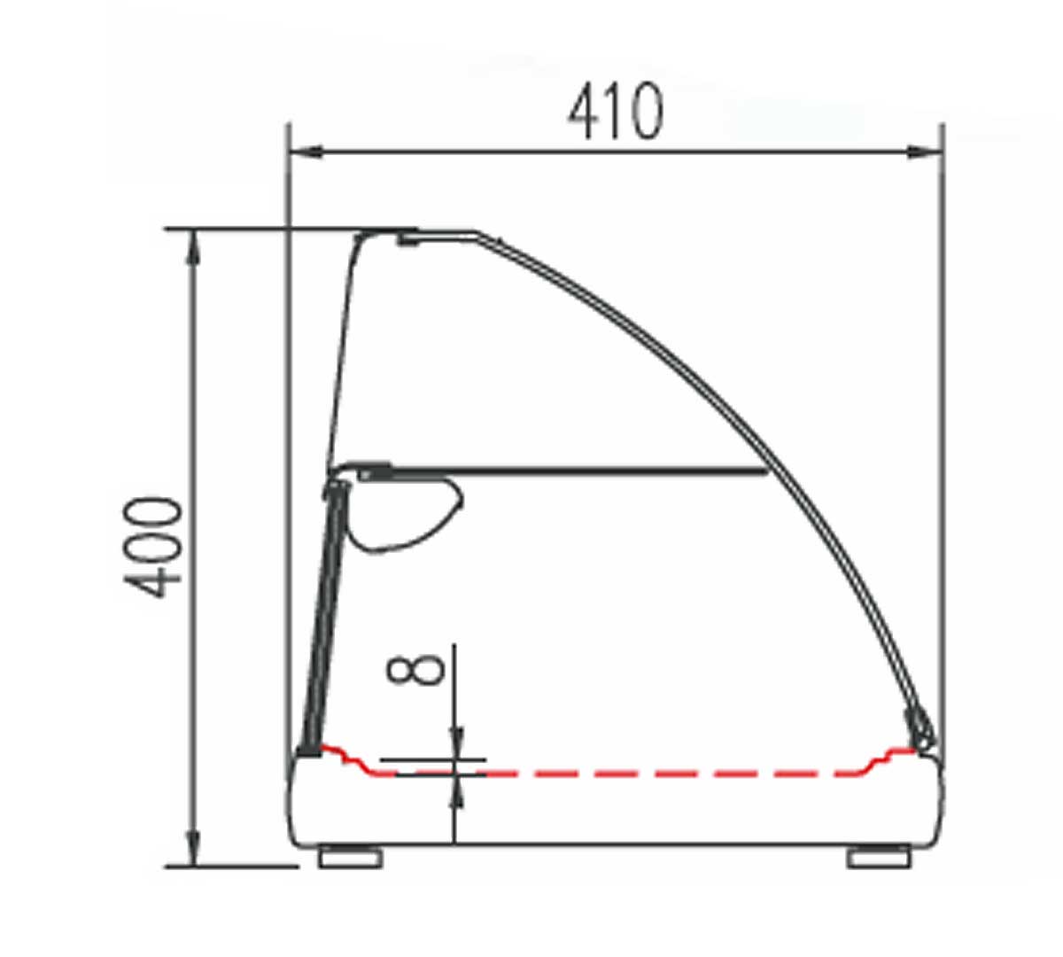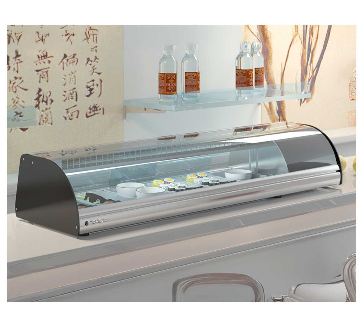 La Vitrina de Tapas Refrigerada Cristal Curvo BCLD de Coreco está fabricada en acero inoxidable AISI-304 18/10 y tiene bandeja interior embutida preparada para platos.
