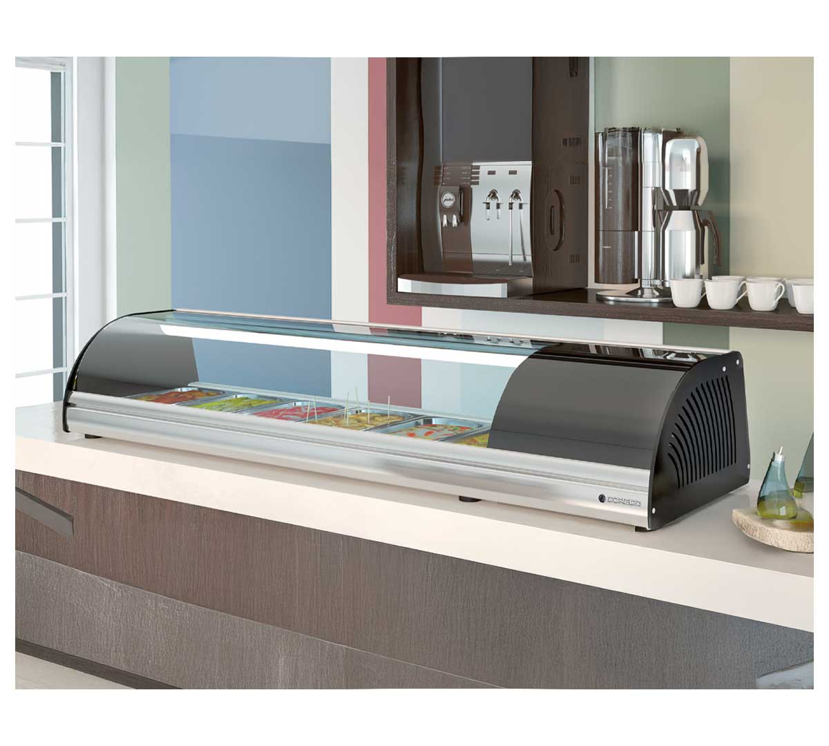 Este expositor refrigerado es perfecto para la presentación y conservación de tapas, pinchos, aperitivos y platos fríos en barras de bares, restaurantes, cafeterías y locales de restauración que buscan mantener la frescura y el atractivo visual de sus elaboraciones durante todo el servicio.
