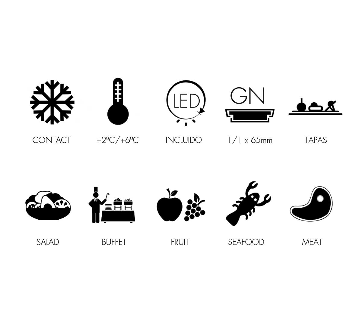 Esta vitrina refrigerada es perfecta para su uso en barras de tapas, buffets de ensaladas, expositores de mariscos, mostradores de fruta y zonas de autoservicio donde se requiera mantener los alimentos a temperatura controlada y en condiciones higiénicas óptimas.