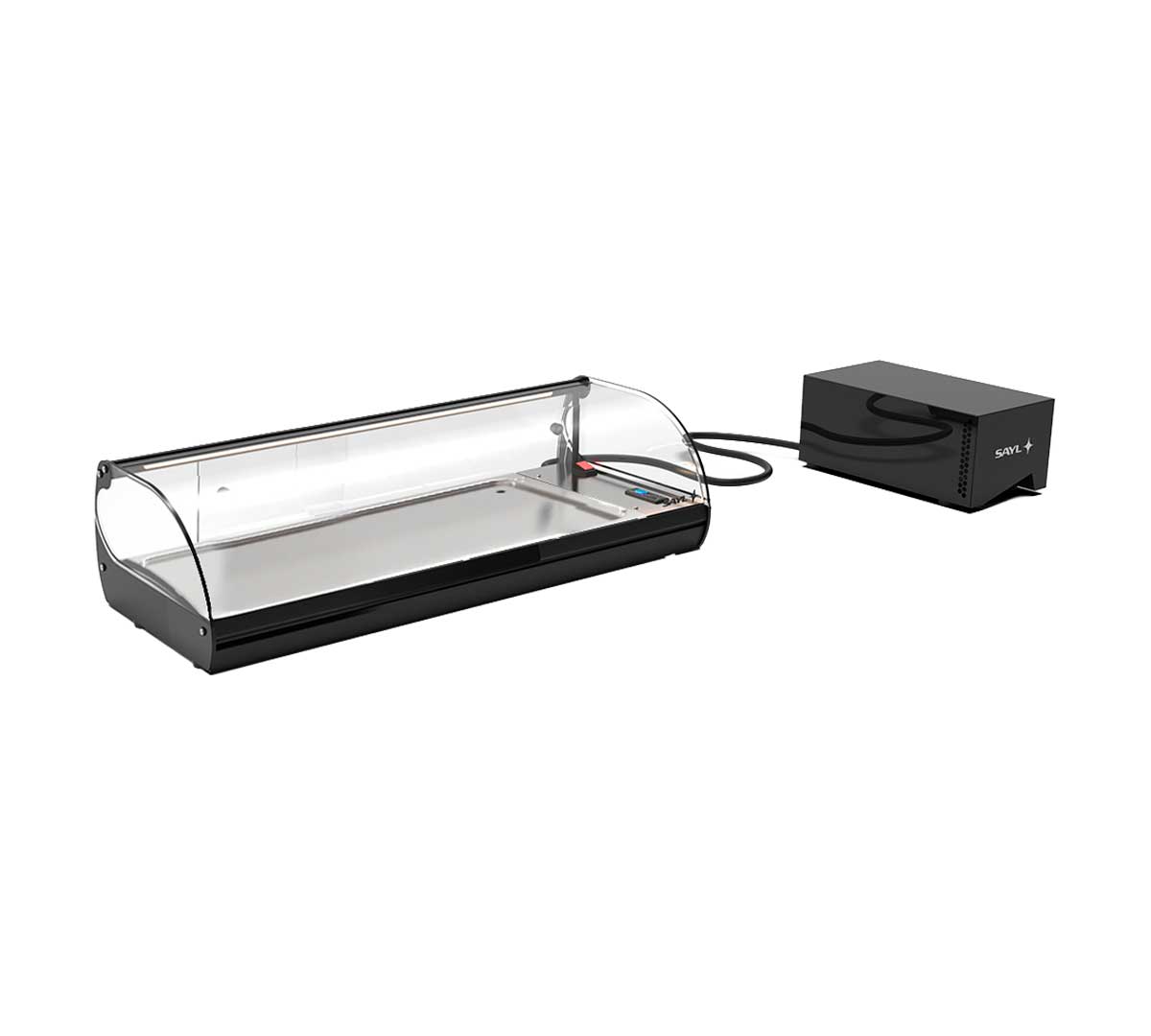La Vitrina Refrigerada Classic Grupo Remoto 1 Piso Cuba Plana de Sayl incluye el grupo frigorífico y cable de 2 metros. El motor no está dentro de la vitrina. Es un motor externo por lo que es ideal para optimizar el espacio en zonas reducidas.