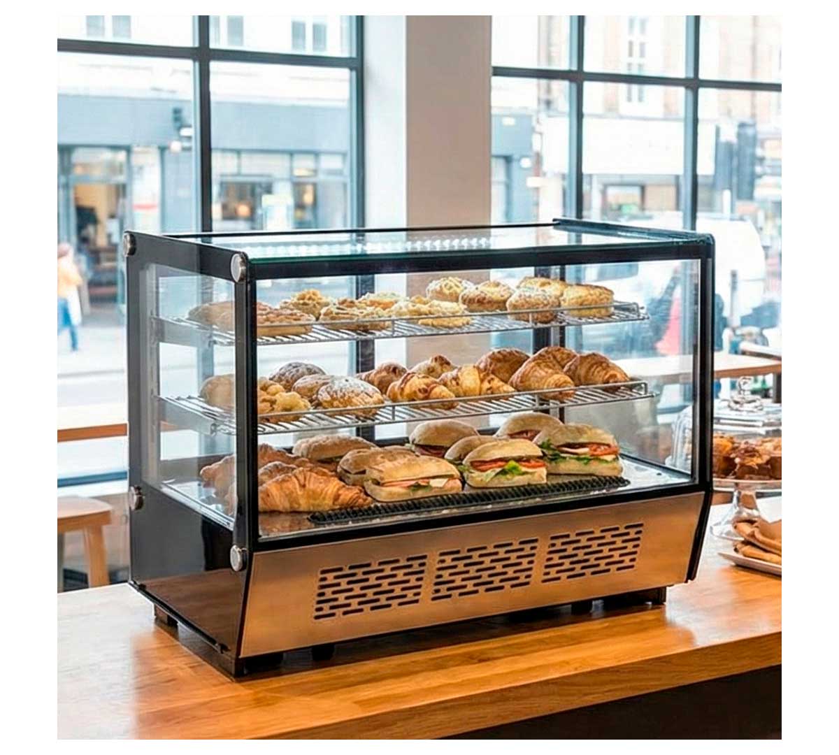 La Vitrina Expositora XCWZ de ClimaHosteleria es un expositor de sobremesa con acceso por puerta trasera y acabado en blanco o negro. Especial para exponer productos en cafeterías y pastelerías.