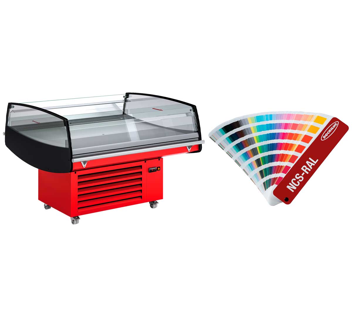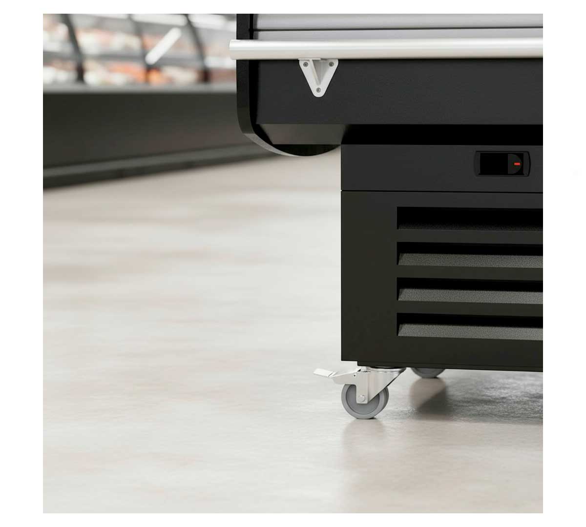 Esta vitrina refrigerada tipo isla destaca por su robustez, su gran capacidad de carga y su elegante acabado exterior en acero plastificado negro, lo que la convierte en una opción versátil y personalizable para cualquier espacio comercial. Además, asegura una óptima presentación y mantenimiento de los alimentos.