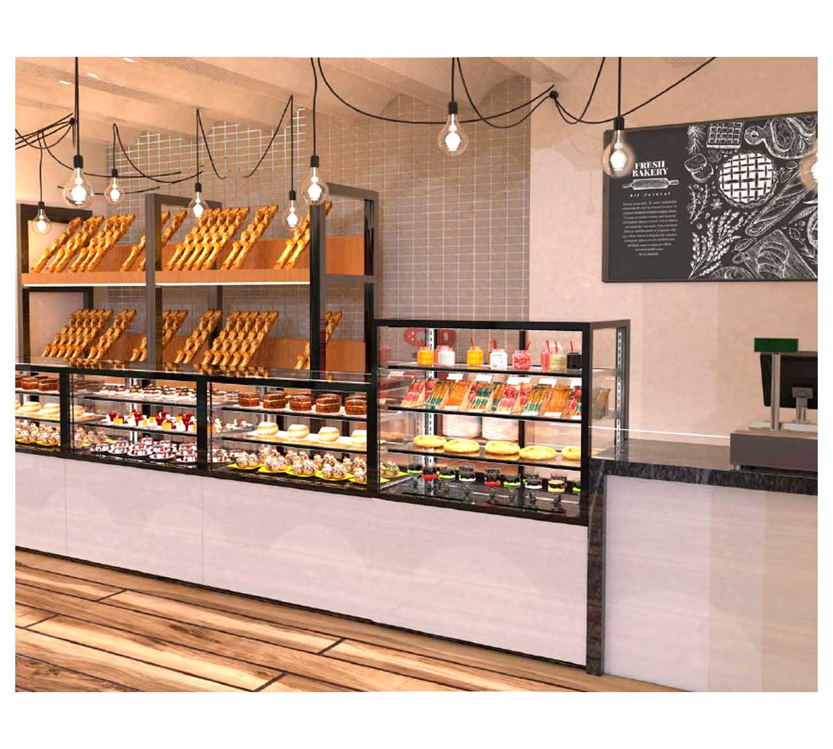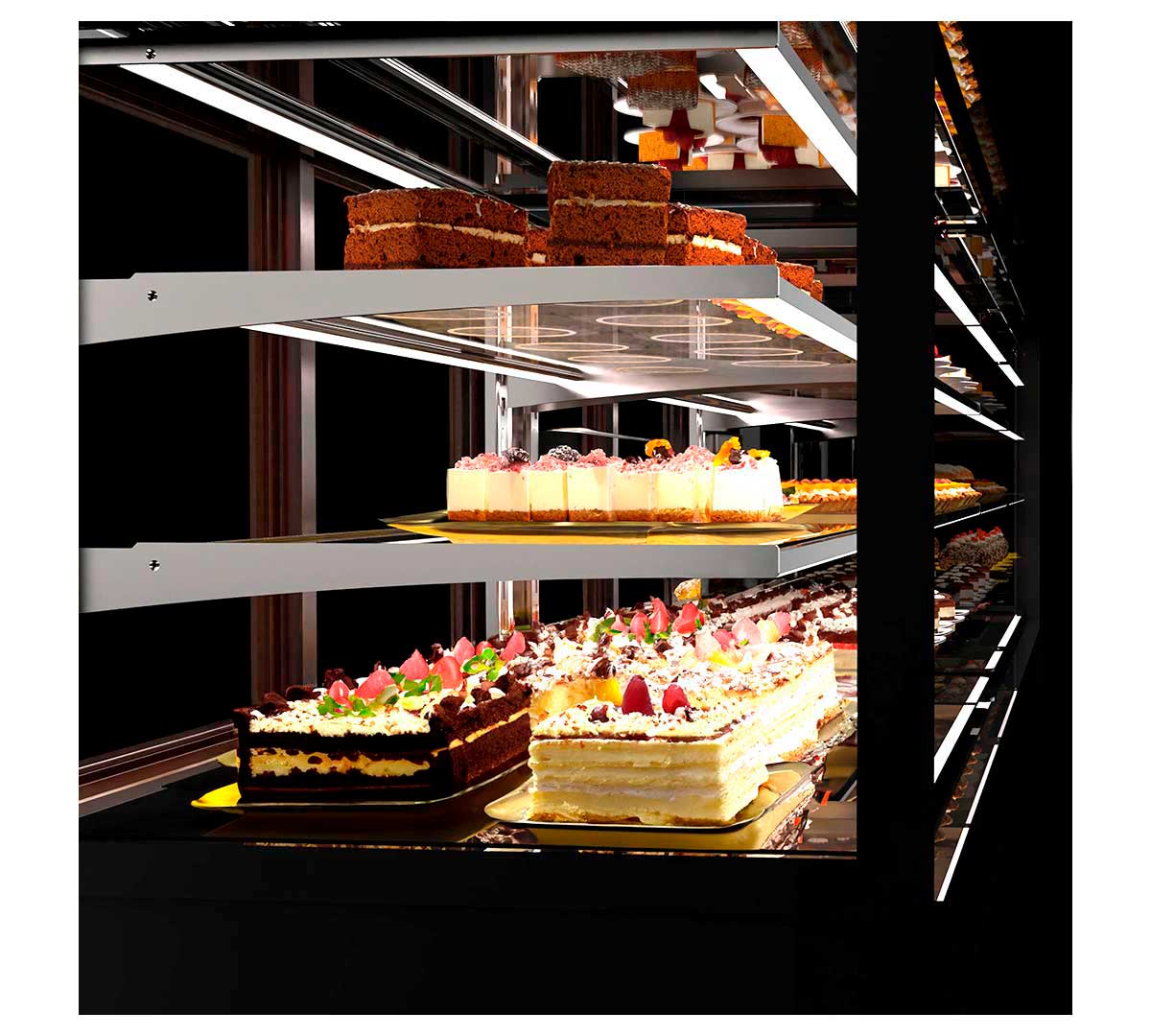 Su diseño la hace especialmente adecuada para buffets, cafeterías, pastelerías, panaderías y cualquier establecimiento que precise una presentación atractiva y funcional de productos frescos.