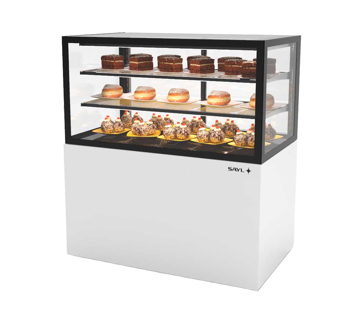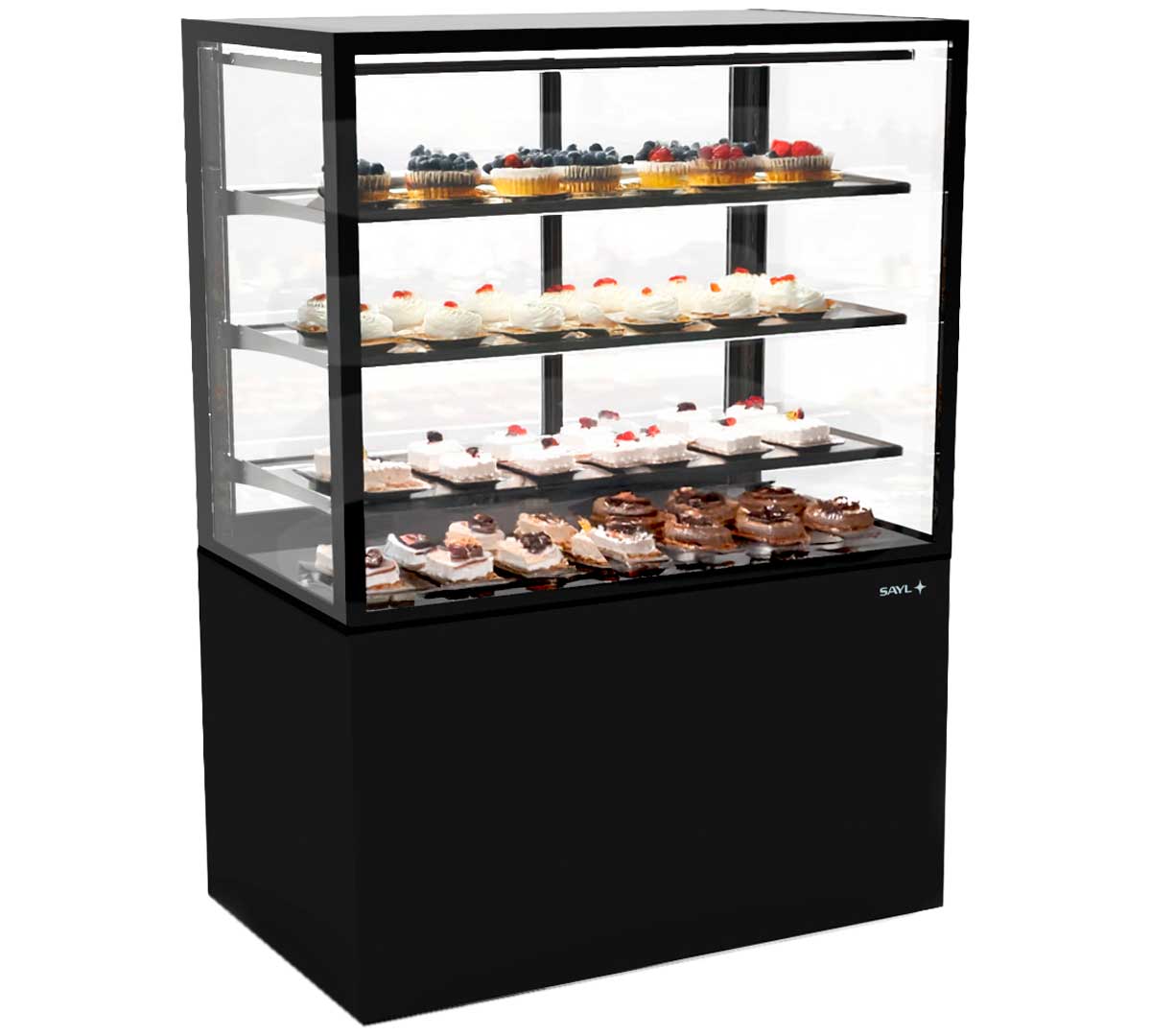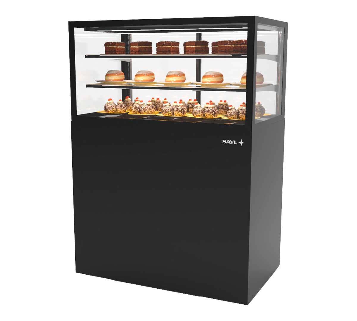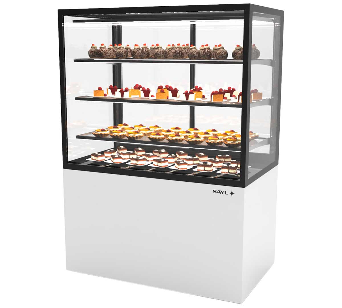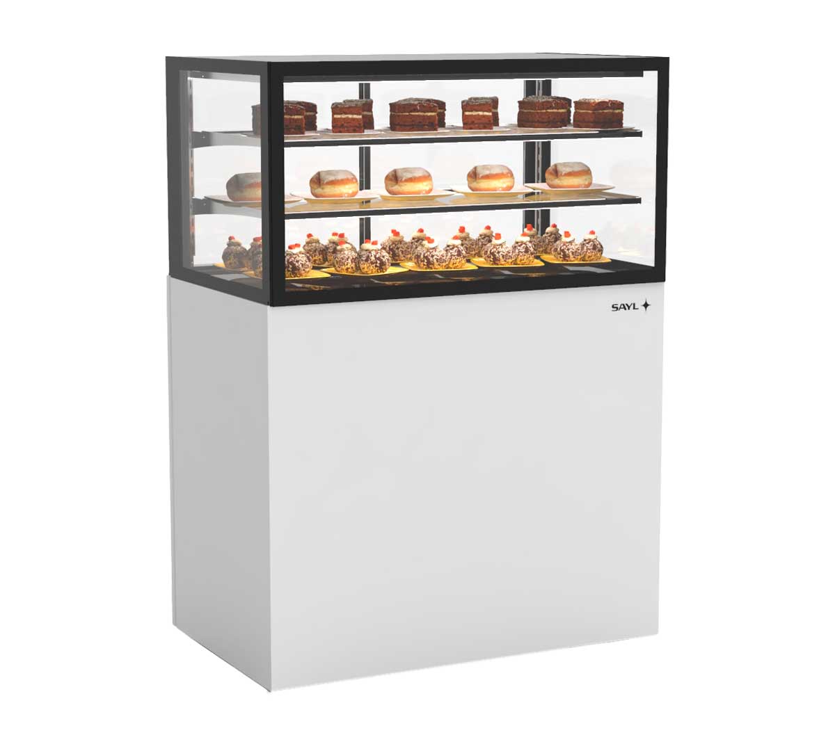 La Vitrina Expositora Integra con Base 100 de SAYL tiene una base de 100 cm de ancho. Es una solución avanzada para la exposición y conservación de productos en negocios de restauración y alimentación.