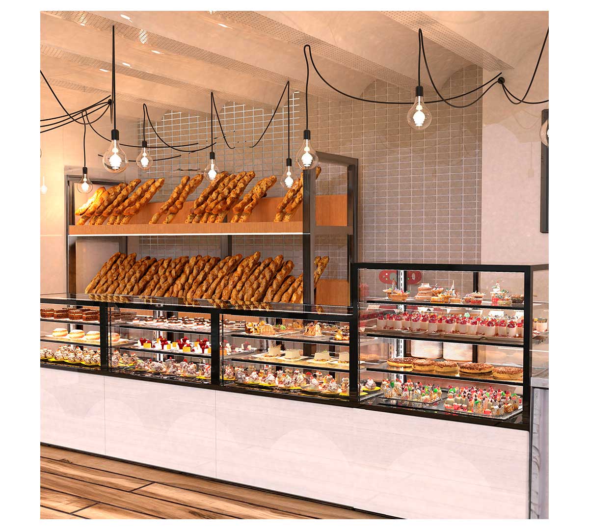 Puedes presentar una gran variedad de productos que no necesiten refrigeración ni calor, como bollería seca, pan, snacks, bebidas o productos envasados, con una visibilidad perfecta gracias a sus cristales de alta calidad.