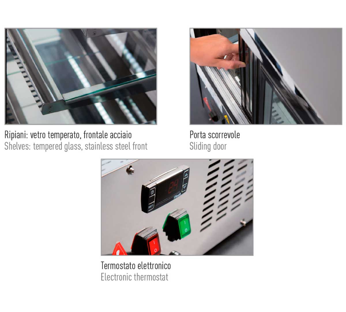 Su interior de acero pulido crea un efecto espejo que mejora notablemente la visibilidad de los productos expuestos, aportando un acabado profesional y atractivo sin comprometer el rendimiento frigorífico.