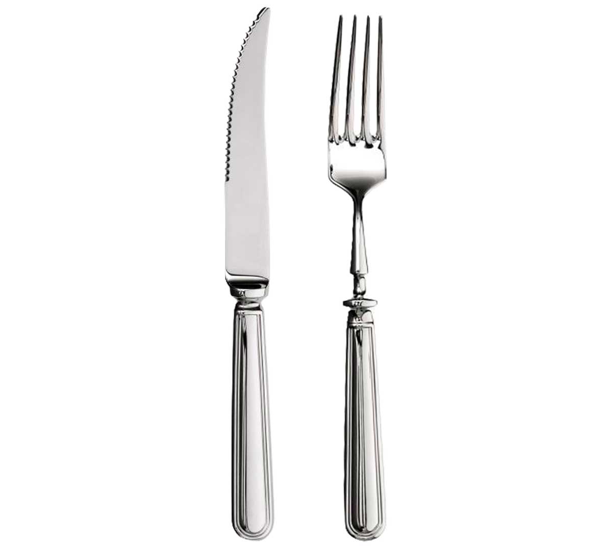 Cubiertos de alta calidad en acero inoxidable. Diseñados para garantizar cortes precisos y durabilidad en el uso intensivo diario. Acabado elegante y ergonómico para un servicio impecable.