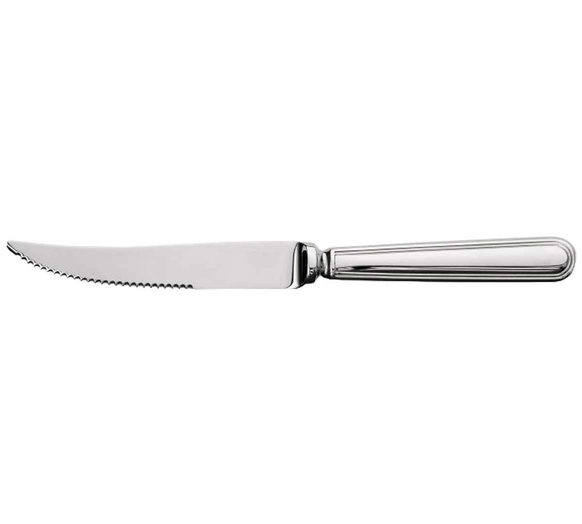 La gama Royal destaca por su diseño robusto y equilibrado. El cuchillo chuletero incorpora hoja dentada para un corte limpio, mientras que el tenedor ofrece firmeza y estabilidad en el servicio, formando un conjunto funcional y duradero para uso intensivo.