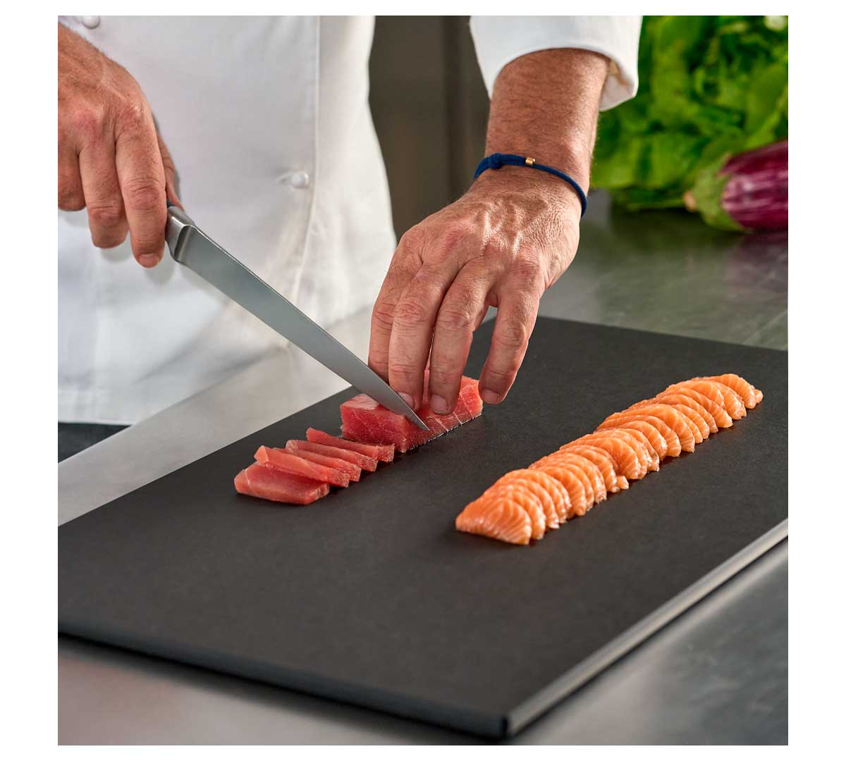 Ideal para restaurantes, hoteles, cocinas centrales y colectividades que requieren tablas de gran formato, resistentes y sostenibles. También apta para obradores y zonas de preparación intensiva.