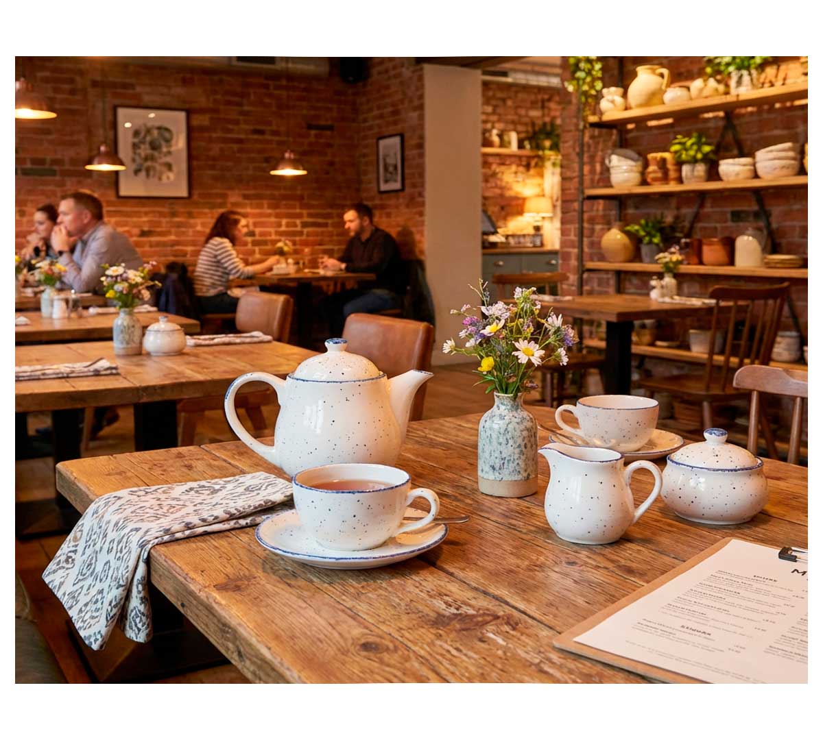Perfecta para el servicio de té o infusiones en restaurantes, hoteles y cafeterías que buscan ofrecer una experiencia de mesa cuidada y elegante. Su diseño permite integrarla tanto en ambientes clásicos como modernos, realzando la presentación de bebidas calientes.