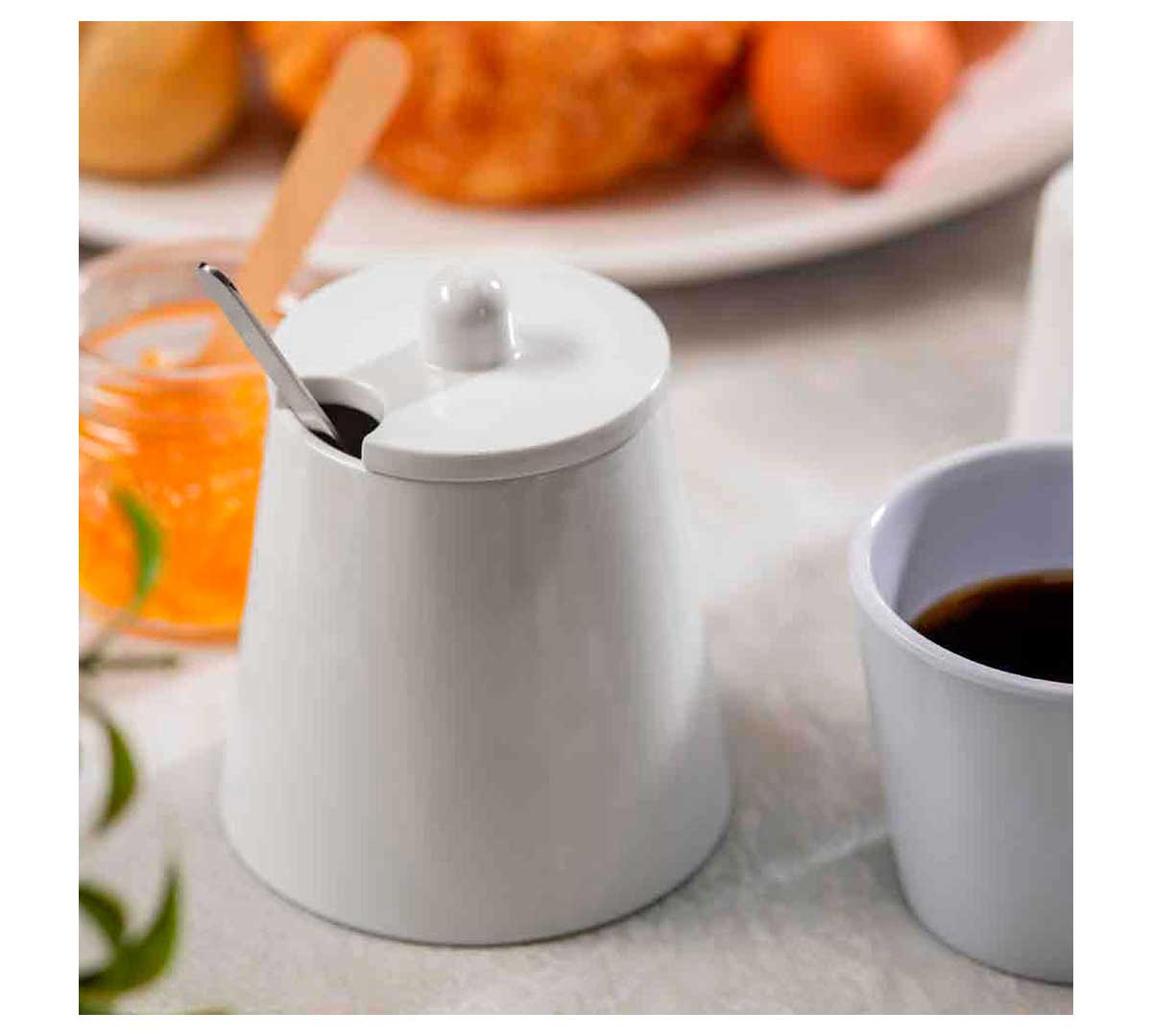 El Tarro de Azúcar con Tapa Pulito TableCraft es una solución elegante y funcional para el servicio de azúcar en mesa, diseñado para quienes buscan la apariencia de la porcelana pero con la resistencia y durabilidad de la melamina.