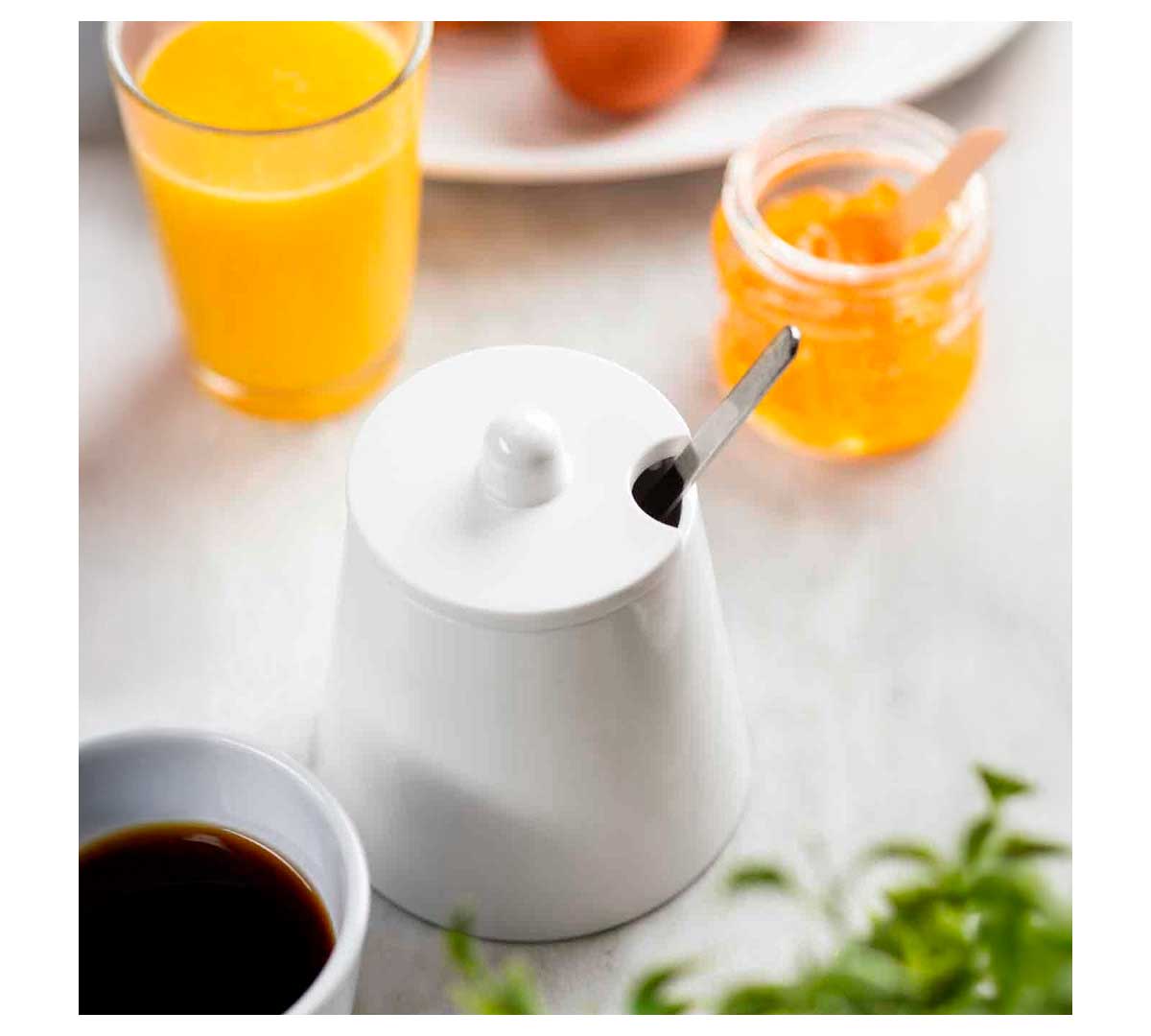 Este azucarero forma parte de la Colección Pulito y destaca por su acabado en color blanco neutro, lo que permite que se integre perfectamente en cualquier estilo de vajilla o decoración.